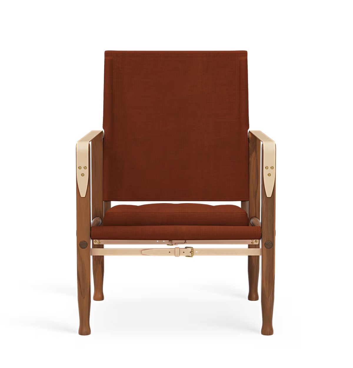 his special edition of the Safari Chair by Kaare Klint features a heavy canvas fabric available in three warm and earthy colours. Merged with soft saddle leather detailing and a vibrant oiled teak frame, this edition offers a new look to Klint’s masterpiece.