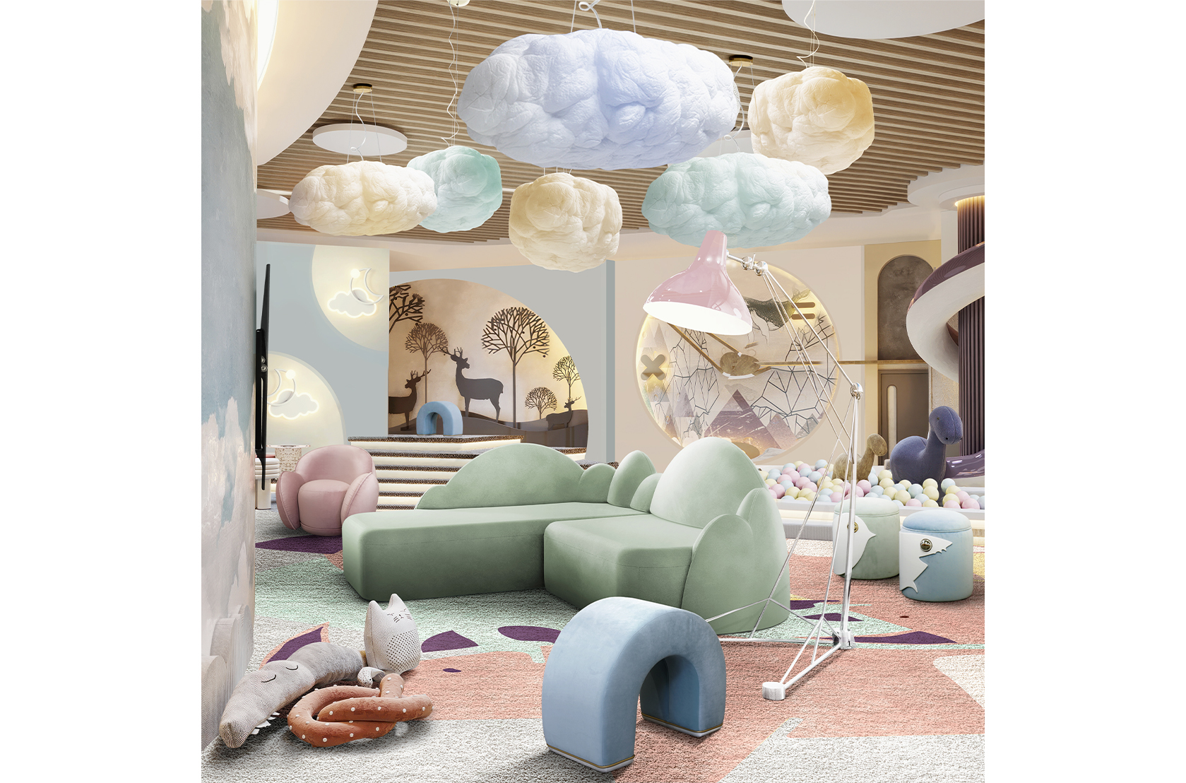 With its futuristic cloud-shaped appearance, Cloud Sofa is inspired by Pixar's short film and is the ideal item for any bedroom or other division. This version presents it self with a “L” shaped design, for play and rest. Every feature of this item adds a touch of charm to any environment and gives the impression of lightness to anyone who tries it.