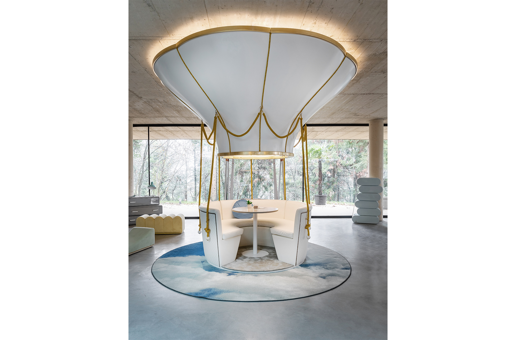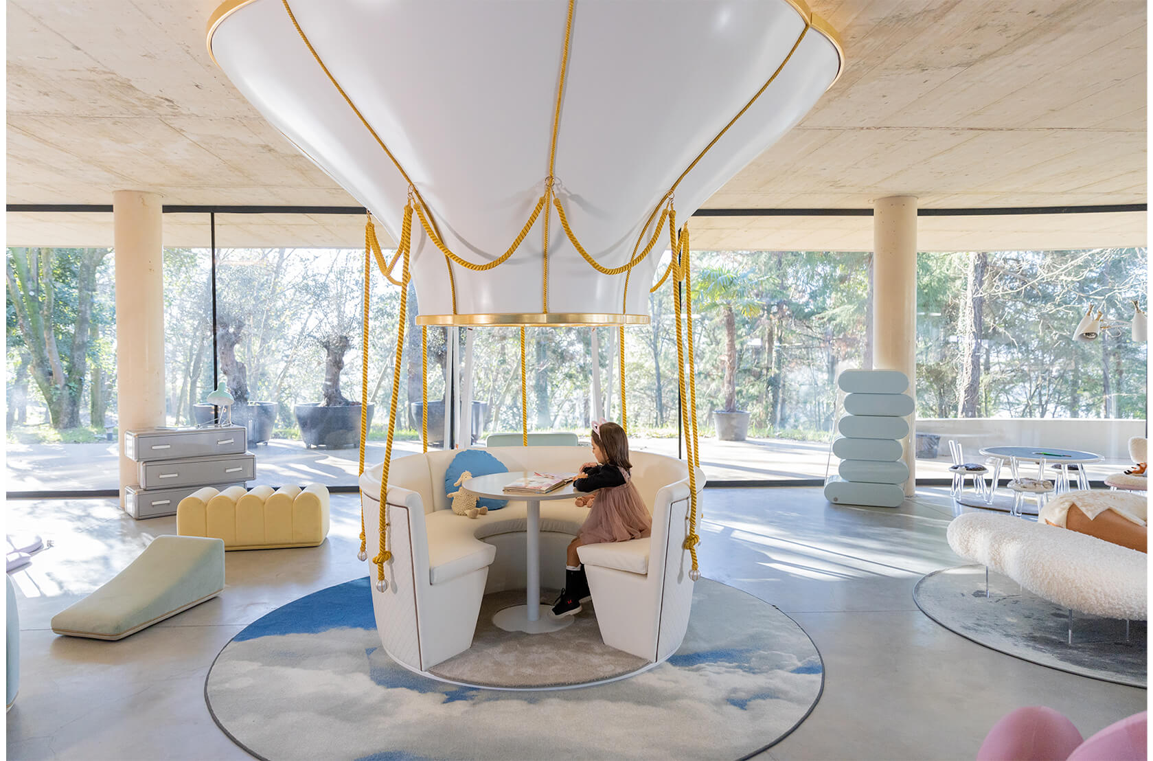 Fantasy Air Balloon Lounge is a themed lounge area, comprised of a marvellous circular sofa, so comfortable that you’ll be seated literally in the clouds, and a practical round table. This lounge set invokesthe romantic and whimsical ambience of a hot air balloon ride while being the perfect spot for yourkids to study, play or simply rest after a school day. The set features and colour-changing light andsound system on the top part, and due to its unique design can be easily used in any type of set, froma kids room to a commercial or larger-scale project.