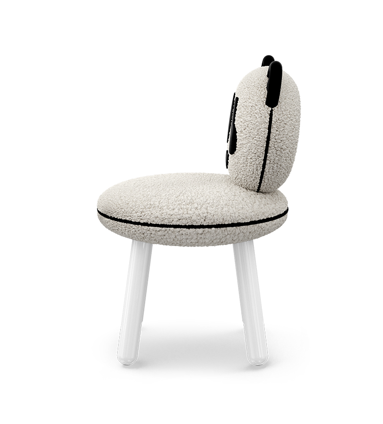 Pandas are arguably the cutest and most adorable animals on the planet. Their extreme fluffiness is so captivating that we tend to always associate pandas with happiness, joy, and love. One of the most famous Pandas in animated movies is the clumsy, lovable, and unlikely hero Po, from "Kung Fu Panda". Po is a giant panda, who dreams of becoming a skilled martial artist. The story follows Po's journey of self-discovery as he learns about the true meaning of kung fu and the importance of inner strength and belief in oneself. Po inspired this super fluffy animal-themed chair that celebrates a tale of courage, perseverance, and the power of believing in oneself.