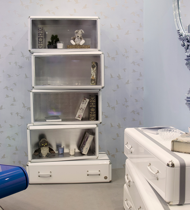 With a creative and playful design, the Fantasy Air Bookcase is inspired by vintage travel suitcases to reinforce the connection between children and exploring. The decorative suitcases are piled up to provide extra storage.