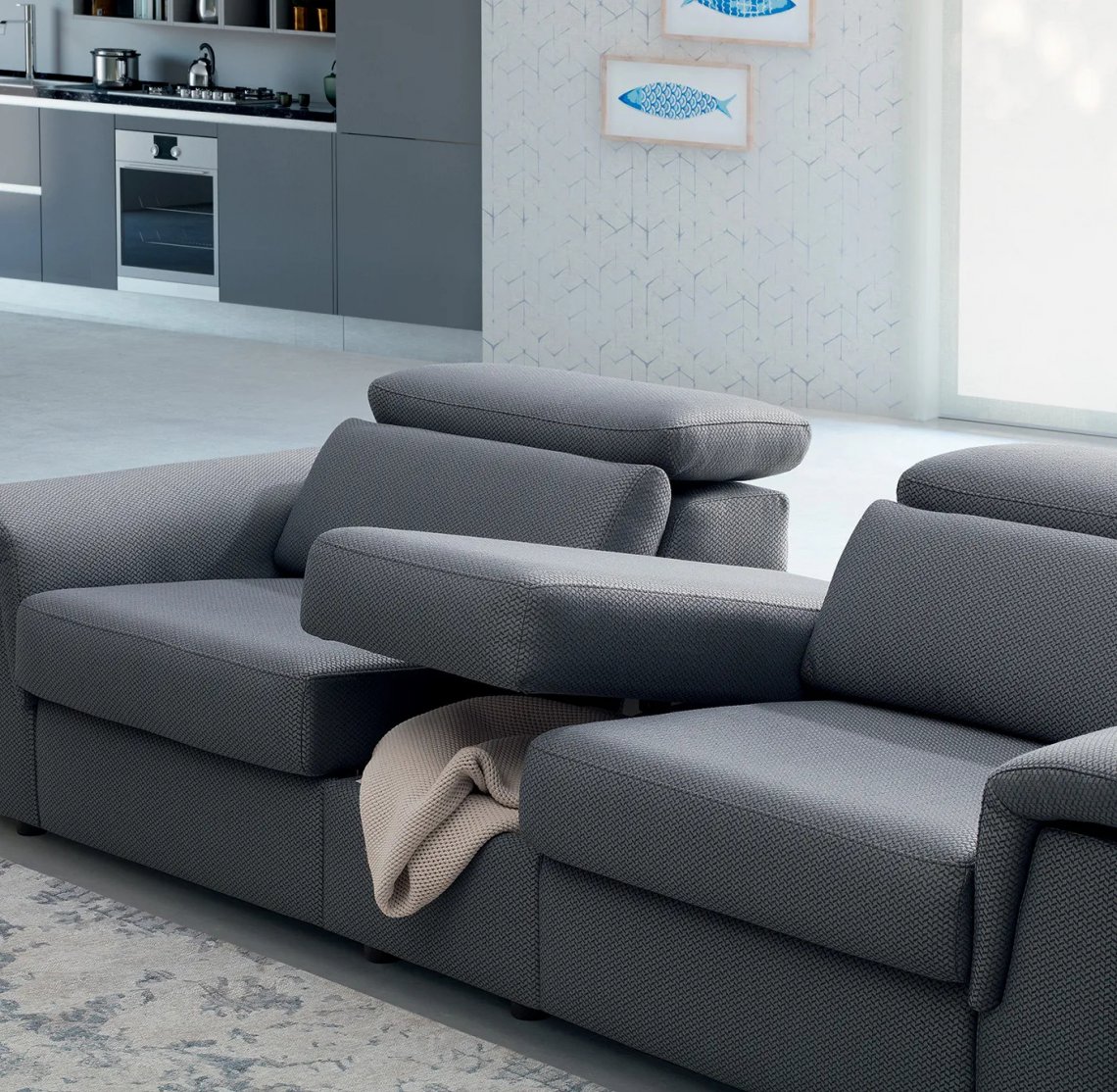 FUSION is a sofa created from the need to reconstruct everything, down to the smallest detail, tailored to the customer: in its different versions it is possible to choose every single component, from the lumbar support to the headrest, from the footrest to the armrest, and rebuild it from scratch. style that you prefer.