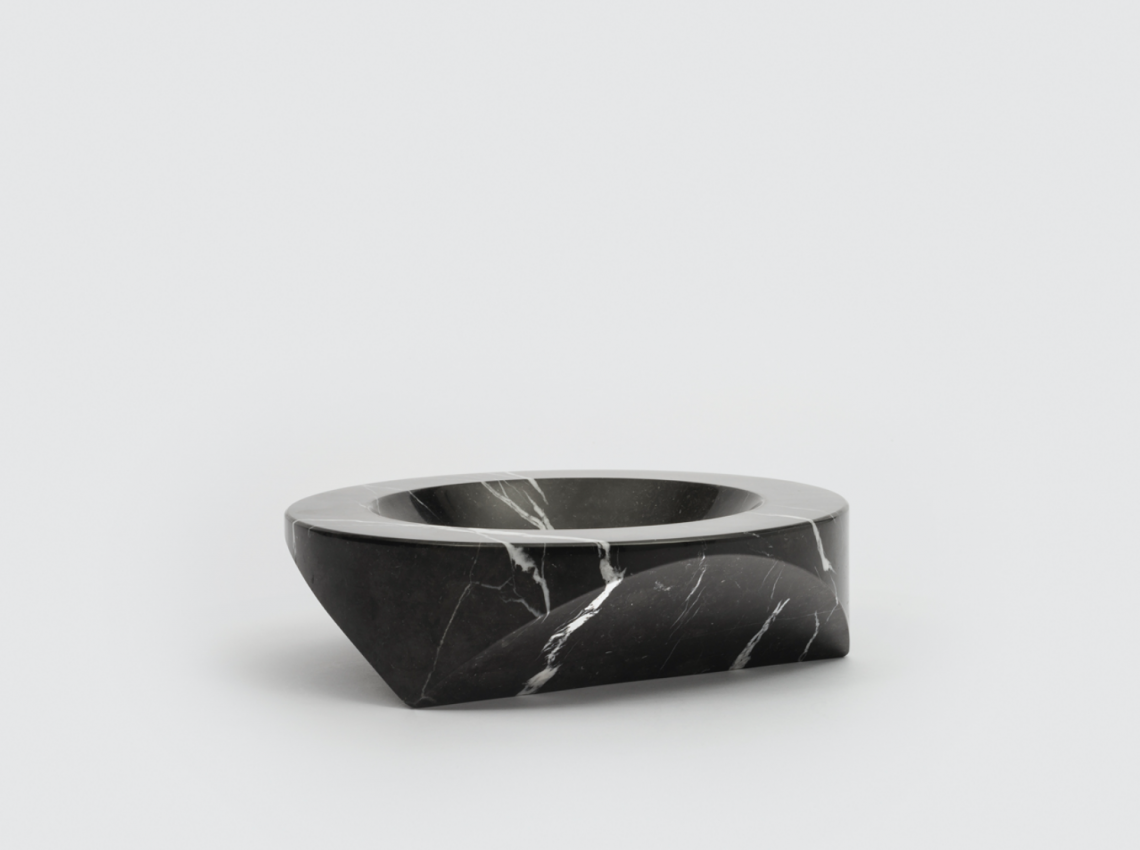 Paros D1 is an ashtray that can also be used as a table centrepiece. It is made from a section of a simple cylinder of semi-finished black Marquina marble and is produced in a limited edition of 100 pieces per year.
