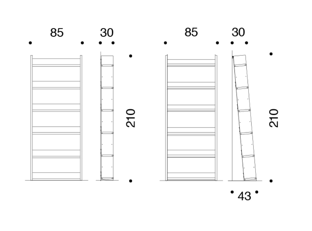 Gran Livorno is a small, freestanding bookcase. It is the evolution of the Livorno bookcase, and maintains the same structural principals and minimal form. The piece is made of varnished sheet metal and the brilliance of its design really shines through when it is put into use.