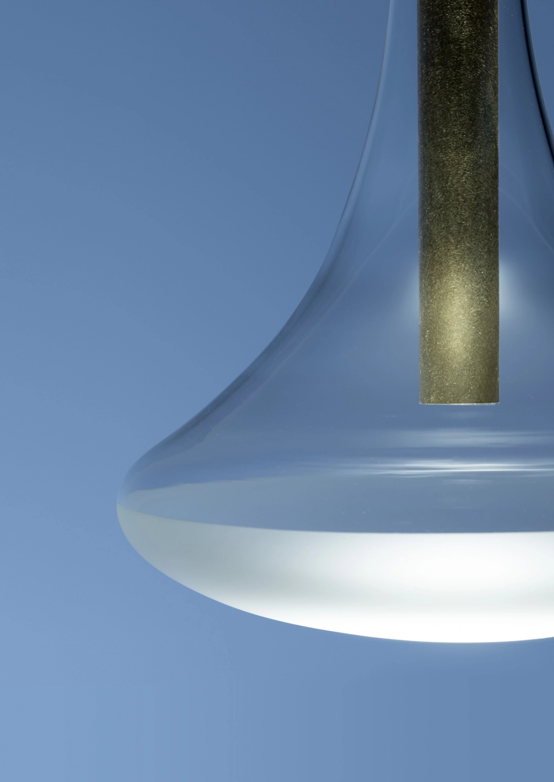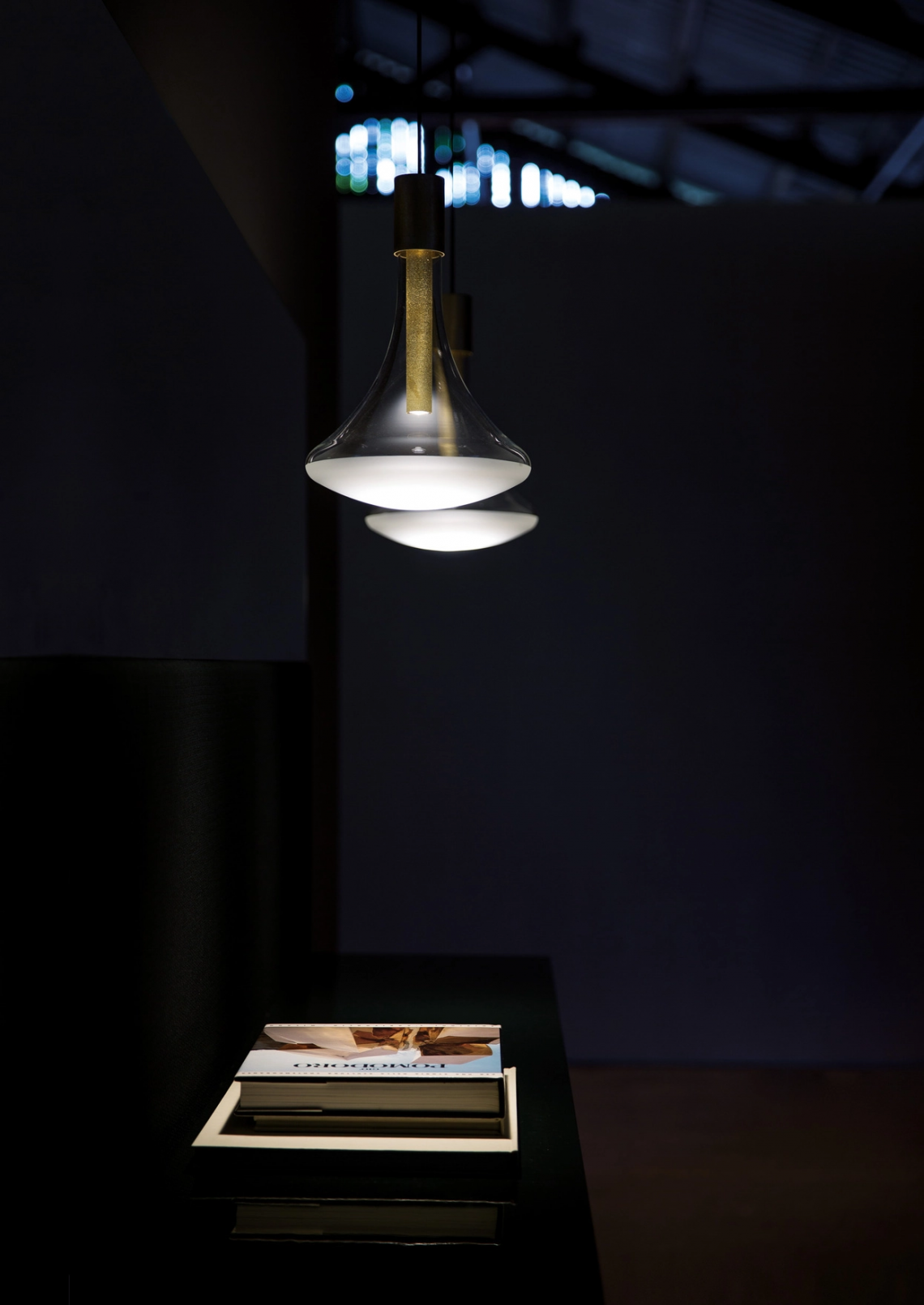 The shape brings to mind a light bulb that was never born. Think steampunk: situations in which instruments were inspired by the rudiments of electricity. The classic light bulb that has no future becomes a wonderful device made of luminous diodes. What would the past have looked like if the future had arrived first?