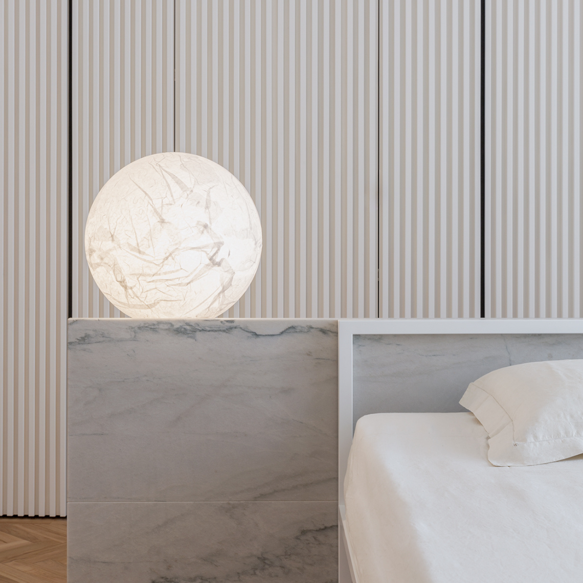 Seen from down here, the moon has a thousand nuances. When full, it brings joy to those who watch it turn. Moon was created from the dream of bringing the moon inside your own home. The hand-made Japanese paper surface makes every lamp unique.