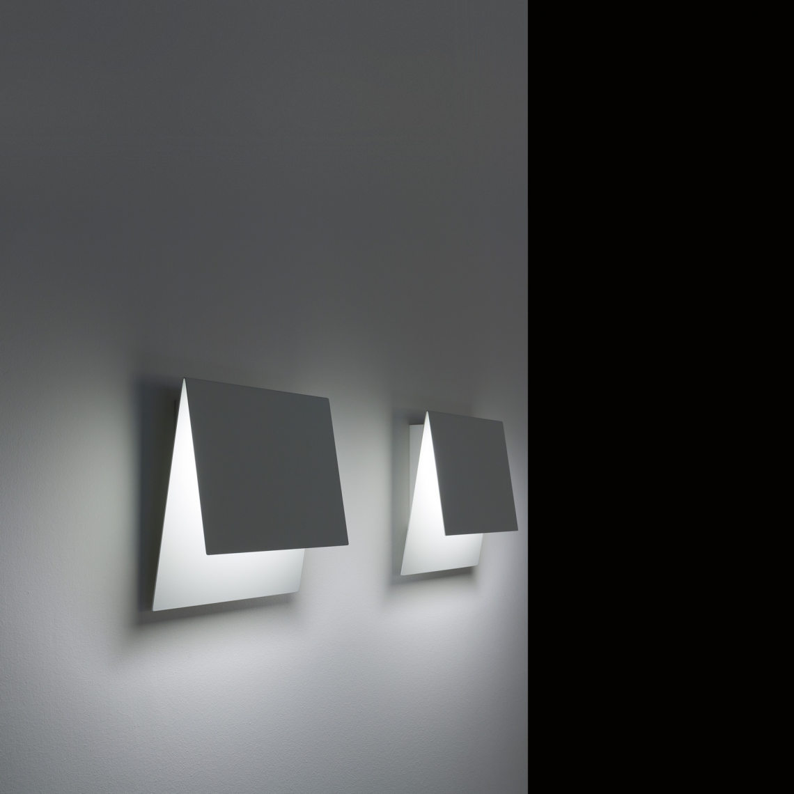A wall lamp made with a simple folded sheet of metal with a dimmable led light source. The light source remains invisible while the light comes out soft from the metal diffuser, creating a delicate atmosphere. The constructive simplicity and the clean image allows an easy customization for use in various environments.