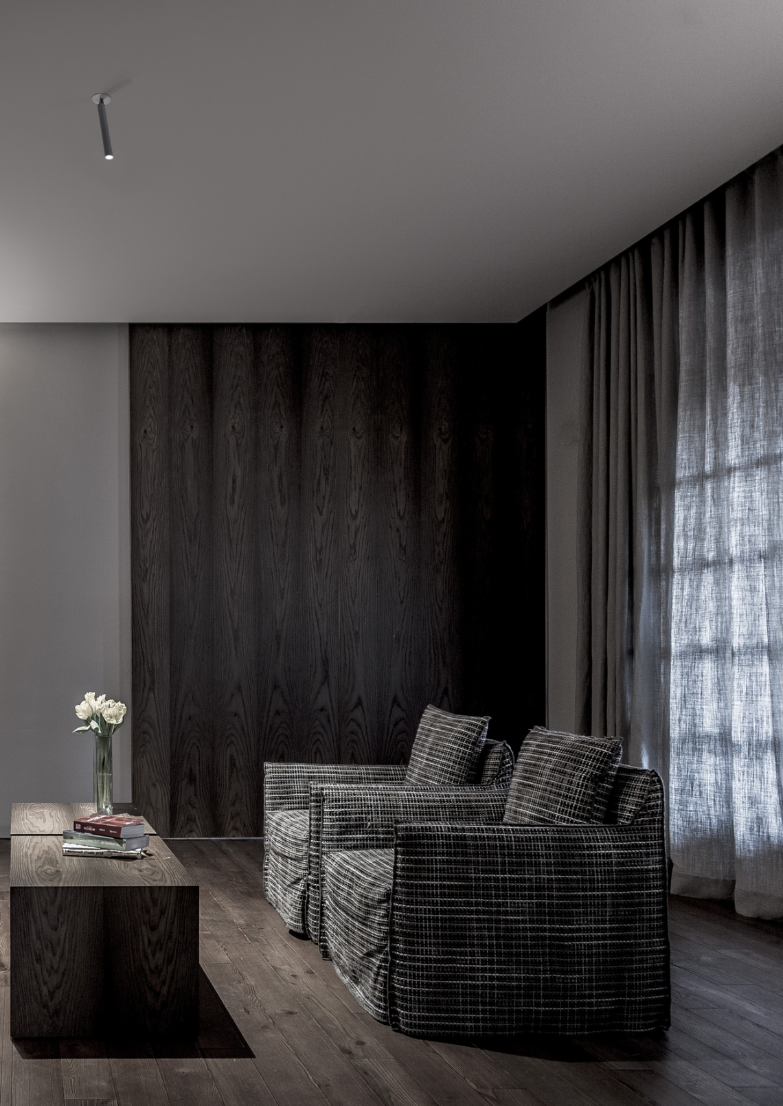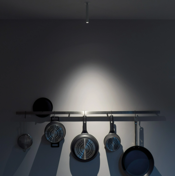 The luminaire is pure form, a simple container for the light source. Light is incorporated into the space, becoming an architectural element.