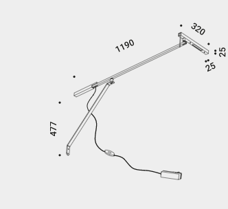 It's the wall version of the Morsetto lamp. A wall lamp, but at the same time very lightweight, suspended light. Three adjustable arms allow the light source to be positioned far from where the lamp is attached.