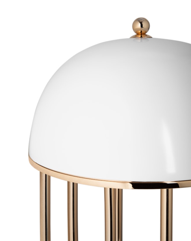Turner art deco table lamp was inspired by the electrifying and memorable dance moves of the iconic pop singer. Tuner is a large table lamp handmade in brass and aluminum. The body has a gold plated finish, while the shade was lacquered a black matte on the outside and a gold powder paint on the inside, so as not to create an uncomfortable glaze for the user. Its five movable arcs can be rotated into the desired position, which gives this black table lamp a sense of fun, and allows you to create the best composition to fit your modern home decor. A versatile piece, that can be used in almost any room of your house, this brass desk lamp looks its best when placed in a modern home office or art deco inspired living room.