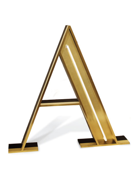 As long as the vintage interior and exterior style lives, the traditional Didot typeface Letter A will be the one suited for any contemporary interior decor. In gold, with a neon shine, this is the marquee light letter your contemporary outdoor decor will be thankful for. With a height of 1 meter, this marquee letter can be coloured customizable and it's available in a mini version. An astounding lamp in the floor of your modern home decor or on the wall mounting.