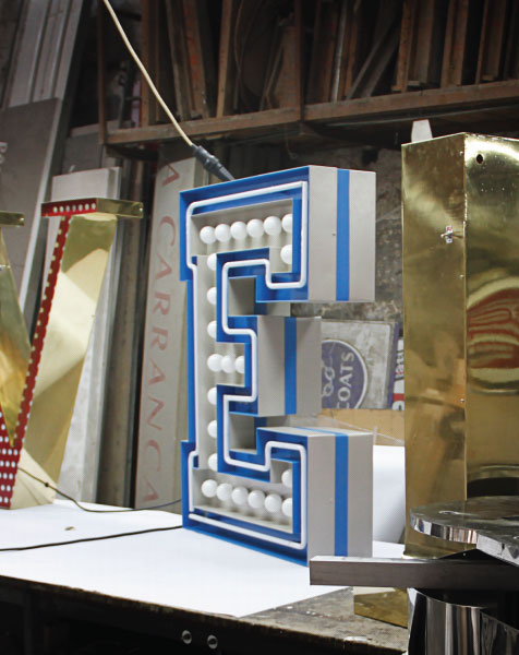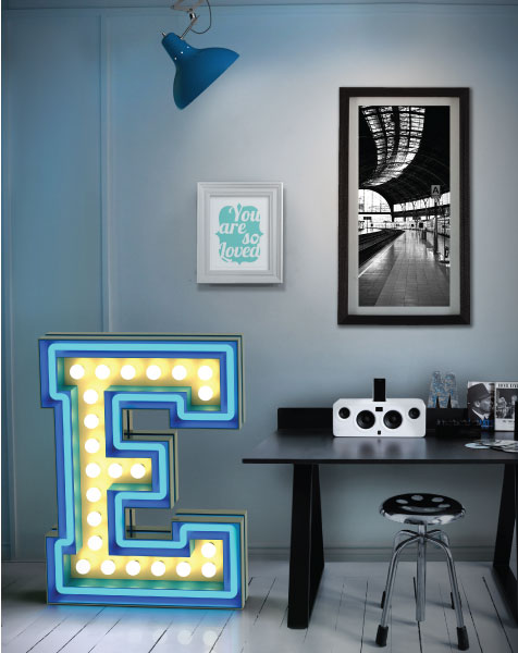 Enthusiastic the letter E calls for the dazzled feeling of a neon party. With 23 bulbs, the college styled font carries with it the blue neon outline that completes any modern home decor. Fun, exquisite and bright, the letter E will bring you all the nostalgia from the college years. With a height of 1 meter, it is ideal for clubs and display showcases. Colour customizable, this marquee letter has 105 x 74 x 20 cm and 39.5 x 29.1 x 7.9 in and can be placed on the floor or on a wall.