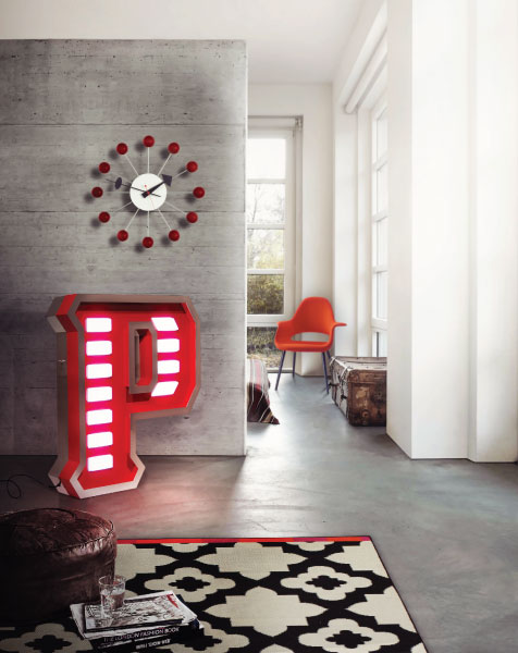 Handmade in aluminum, stainless steel and acrylic, the letter P stands for priceless. By adding the white LED lights with the red colours in the body of the marquee letter design will make your interior or exterior design project a one of a kind, either if you place it on a wall or on the floor. With a height of 1 meter, this lamp can be customizable on demand and its available on a mini version. The perfect way of getting originality, glamour, and softness in your space, whether it’s inside or outside.