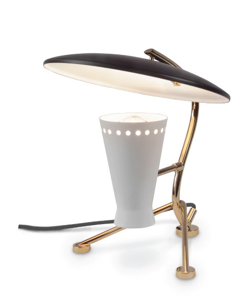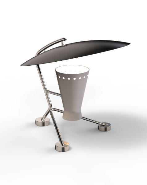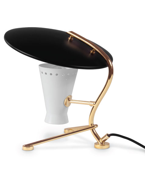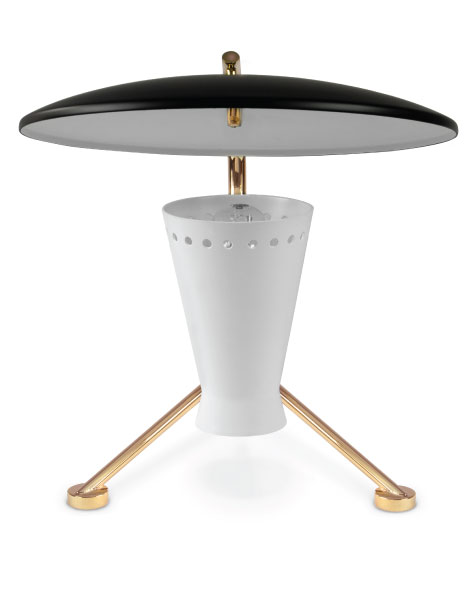 Representing everything that a tripod table lamp should be, Barry mid-century desk lamp is a handmade piece produced in Portugal by some of the finest artisans in the business. This brass lighting design features a shade and a top cover made of aluminum, top coated in matte black and matte white, which can be customized. The shade has a nickel plated finish, emphasizing the contemporaneity of this fine bedroom table lamp. Going as high as 13’, this is a fantastic task and reading light for bed.