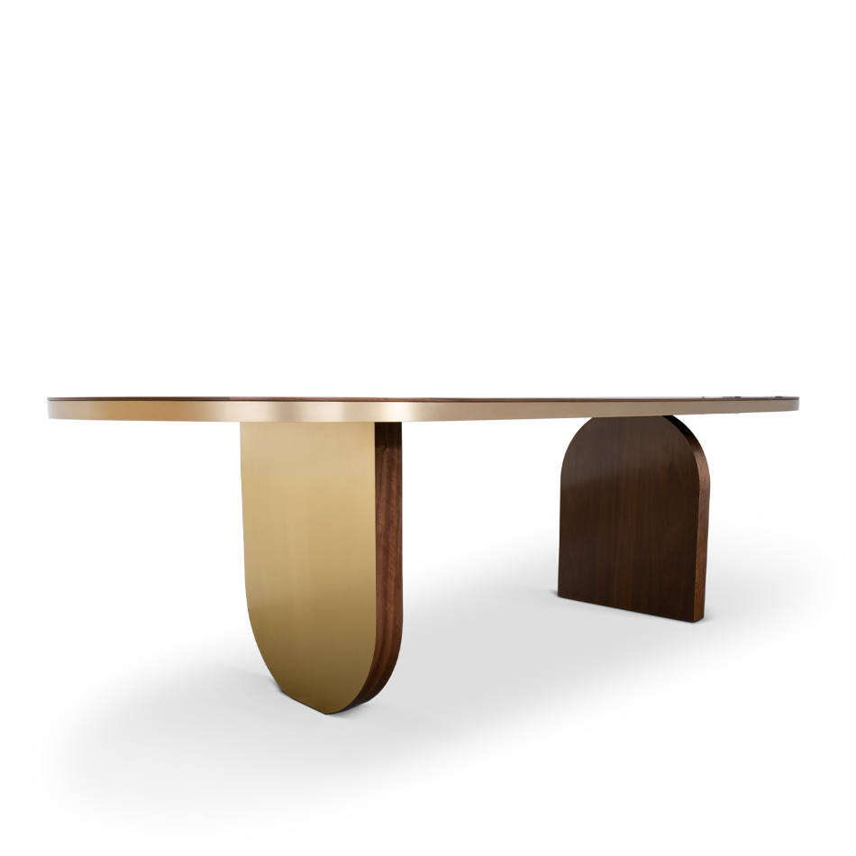 The Ezra Dining Table might be one of the most unique pieces in Studiopepe’s collection for Essential Home. Inspired by the beautiful Italian architecture scenario, the modern dining table was drawn from a combination of straight curvilinear lines rede?ning the limits of physics. Ezra opens the world’s design horizon with its solid wooden structure enlightened with some polished brass details, perfect to embellish any modern space.