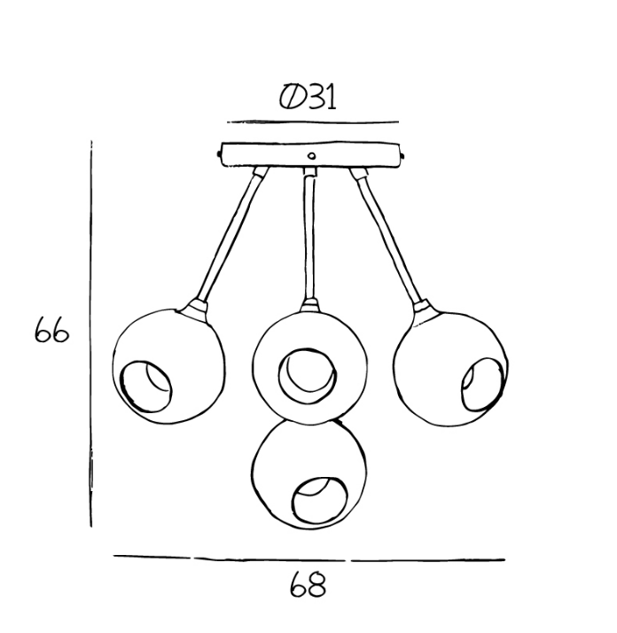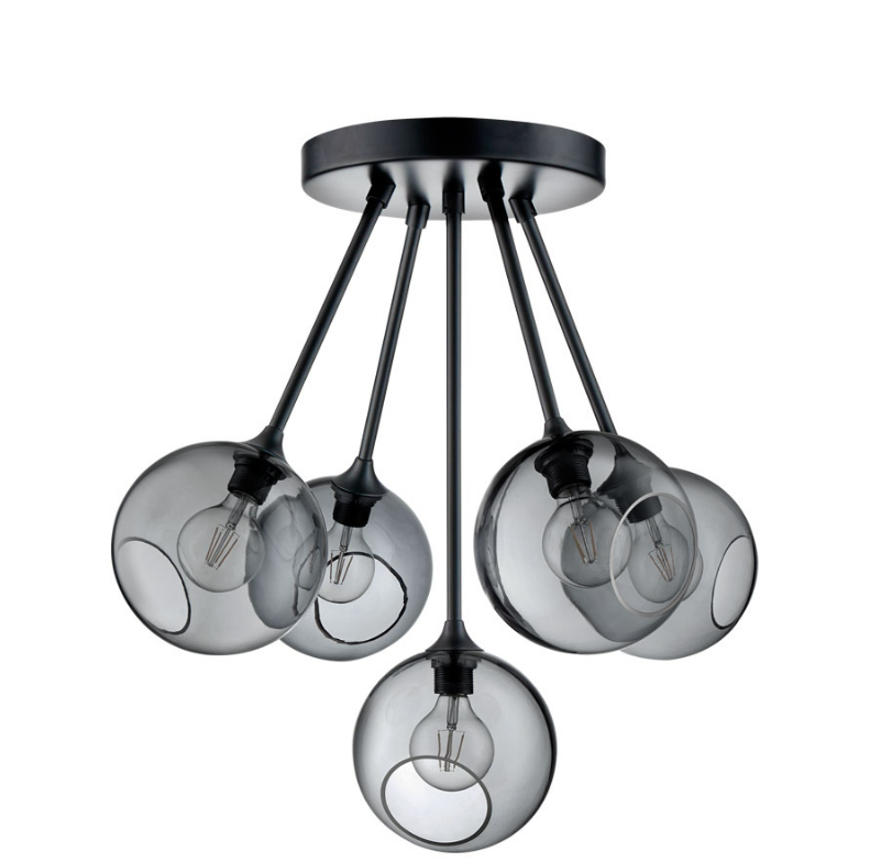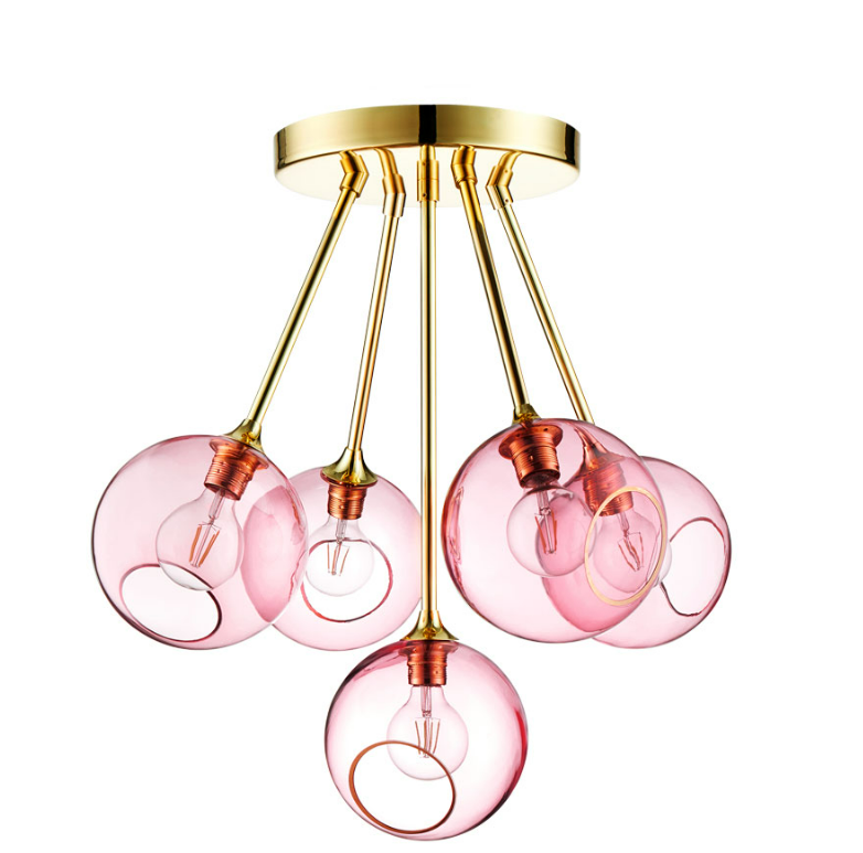 The Ballroom Molecule chandelier is our interpretation of a modern and functional chandelier. This is the crown jewel of the Ballroom series, in shape of a five armed chandelier which stands out anywhere. Please note the lamp is sold without light bulbs. Six light bulbs required for this lamp.
