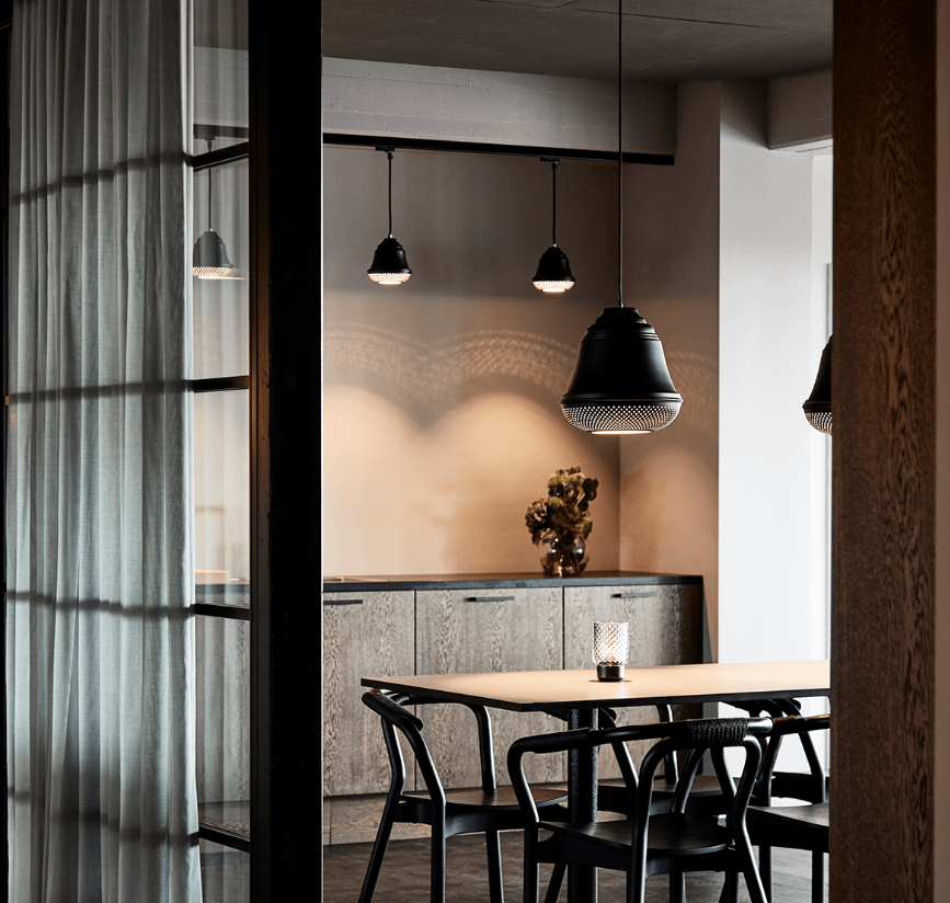 The calm shape of the Bellis lamp stems from the flower Tinkerbell. The elegant shape combined with raw material and perforated shade gives Bellis the refined look of the raw elegance.