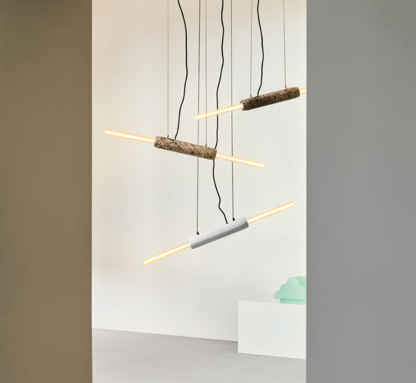We call it Limbo as this pendant has no fixed direction. It can be hung in all directions – up, down, vertical or horizontal. The hand cut marble base is accompanied by two special made lightsabers that creates the artistic appearance of Limbo. The lamp will balance beautifully over the dining table, in the kitchen or the hall. Two light bulbs required for this lamp.