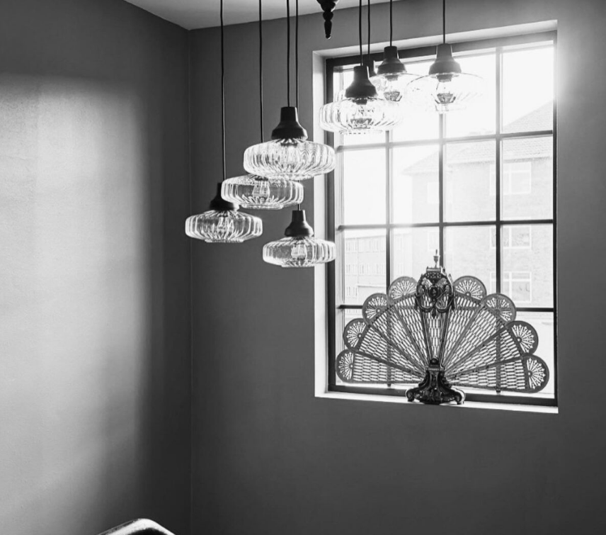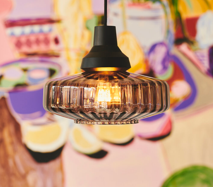 The New Wave Optic pendant spreads a wonderful and vivid light due to the shape of the mouth blown wavy glass.