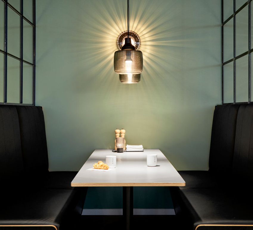 The New Wave Stipe pendant is our take on a retro lamp with an egdy twist. The lamp is elegant and masculine all in one and spreads a cozy light.