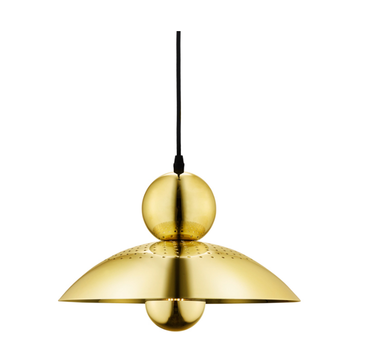 The Wanted pendant is a lamp with a great effect. The perforated gold shade makes the light vivid and alive. It can be used a numerous of places and fits beautifully in a classic decor as well a more modern home.