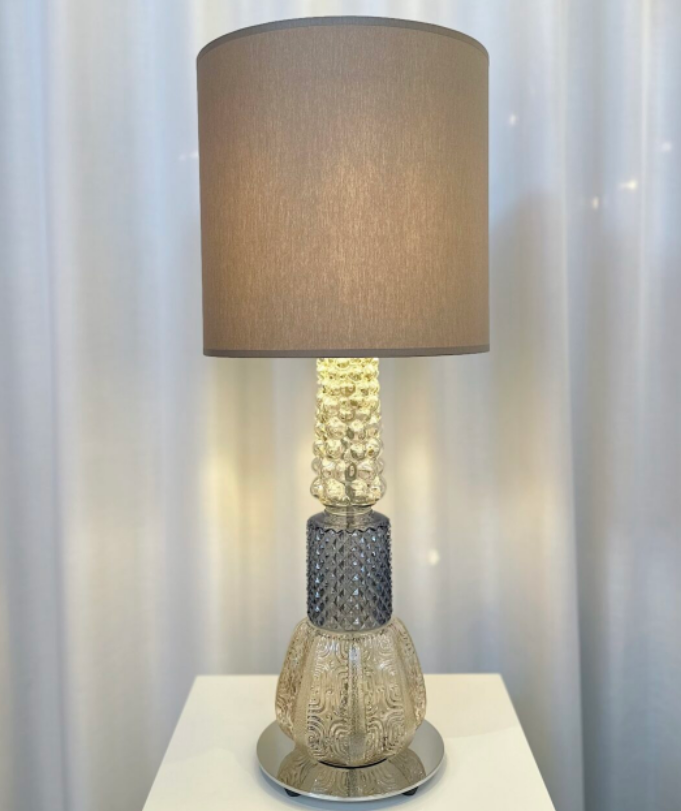 The Original Vintage Lamp is made of carefully selected vintage glasses with different shapes, colors and patterns which make every lamp unique and a piece of art. Both base and lamp are handmade in Denmark. All lamps are one of a kind.