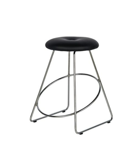The rounded shapes in the Clown stool is inspired by the shape of the circus arena – hence the name Clown. The idea with the ring across the frame is that both adults and children can rest their feet on the rack. The Clown Collection is available in three chair sizes and can be customized after desire. Made in Denmark.