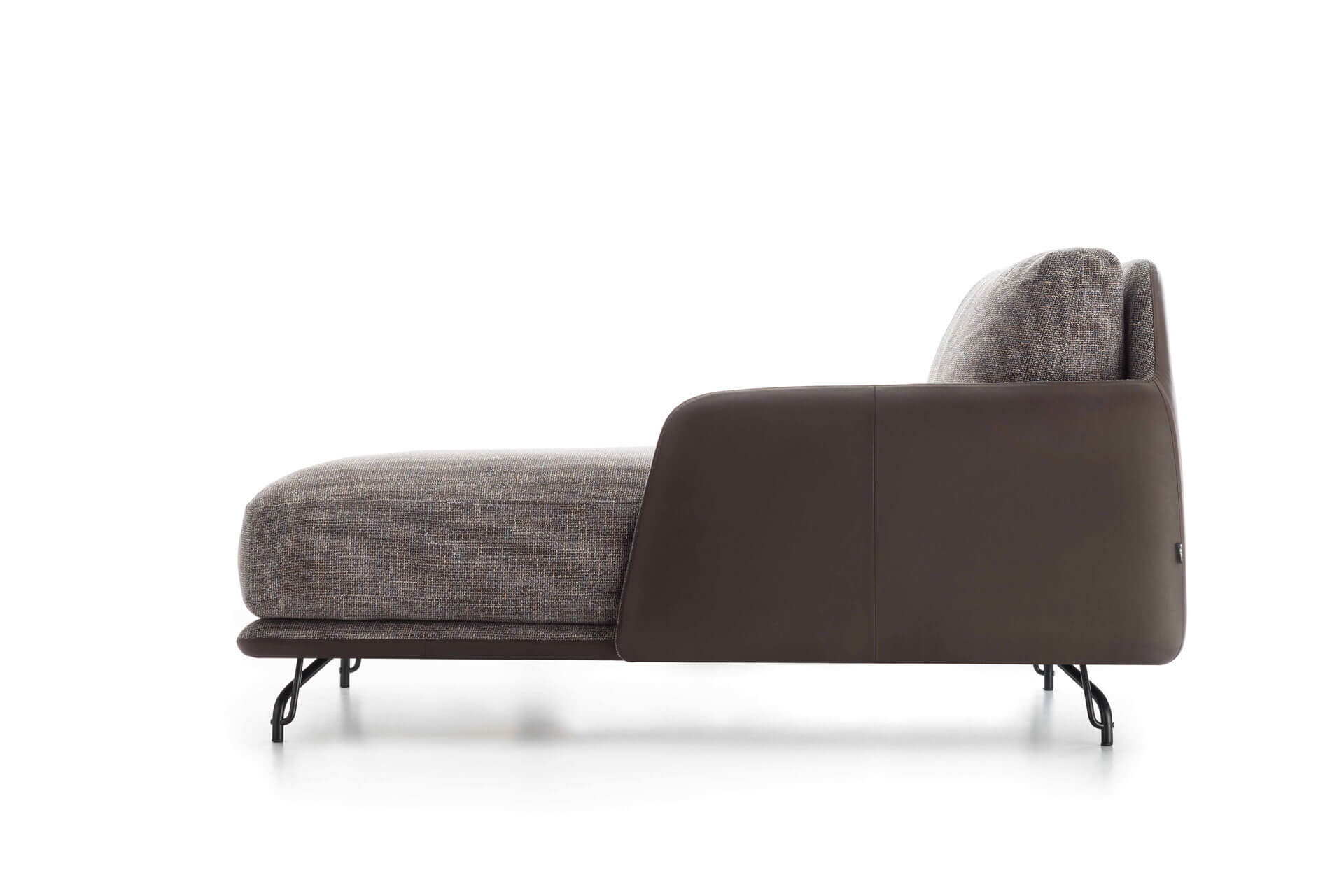 Elliot還提供皮革與織物混合的解決方式,根據需要選擇各種版本的支腳。獨一無二的模塊:原創填料沙發凳可以當座椅使用,也可以用作支撐部件,配噴漆金屬平板。