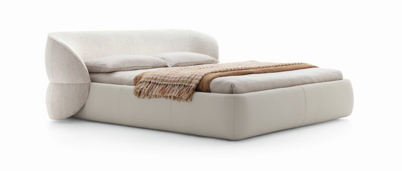 Rotondità e presenza scenica per un letto ideale nel definire una camera esclusiva. L’oggetto scultoreo si esprime al suo meglio in una collocazione centrostanza.