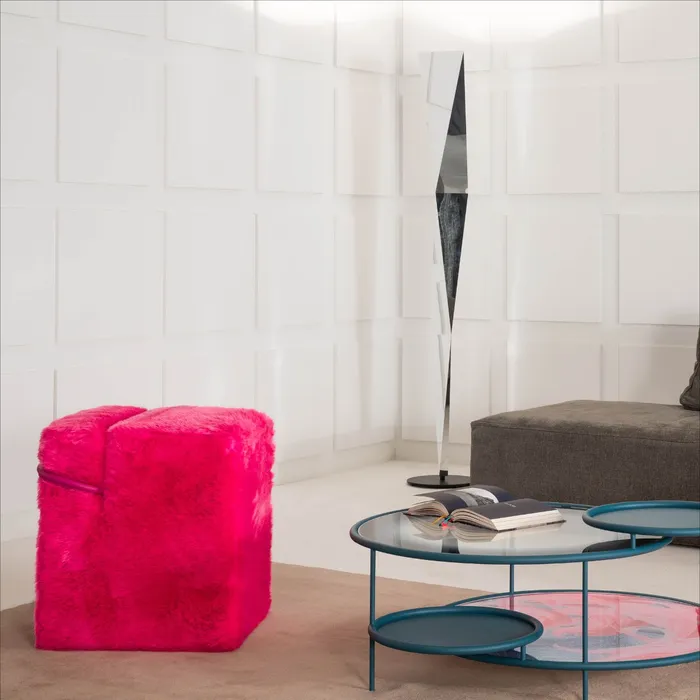 In un’unità abitativa, per il benessere sono necessari molti elementi detti “mobili” che in realtà una volta posizionati rimangono “fissi “. La tendenza di sovraccaricare lo spazio mi è sempre stata inaccettabile; quindi ho sempre lavorato al limite del necessario. – N.Vigo. La seduta “blocco” nata con questo intento nel 1970 viene ora riproposta con la stessa funzione ma con un maggiore spirito di allegria nella scelta dei rivestimenti. Buona seduta!