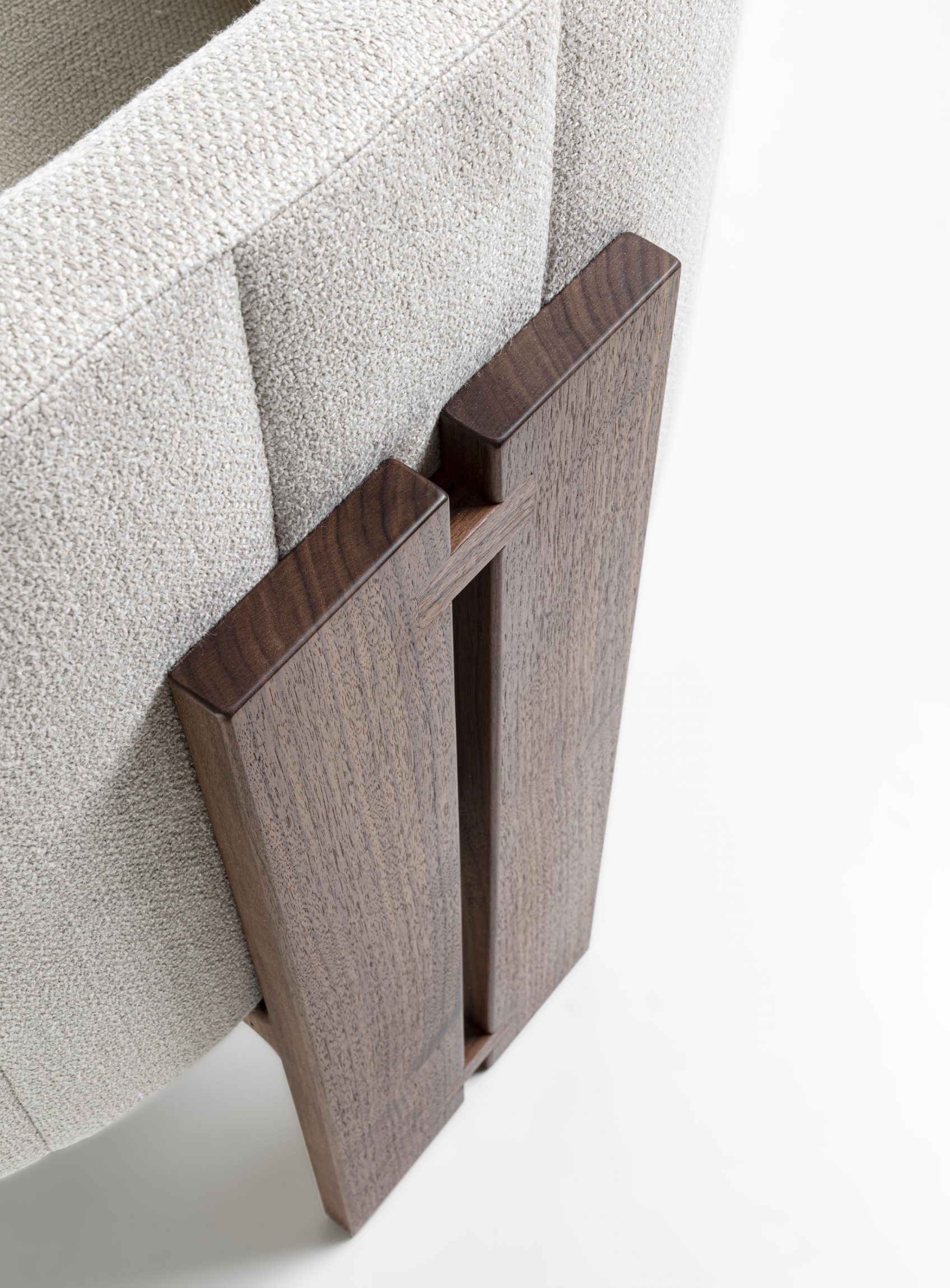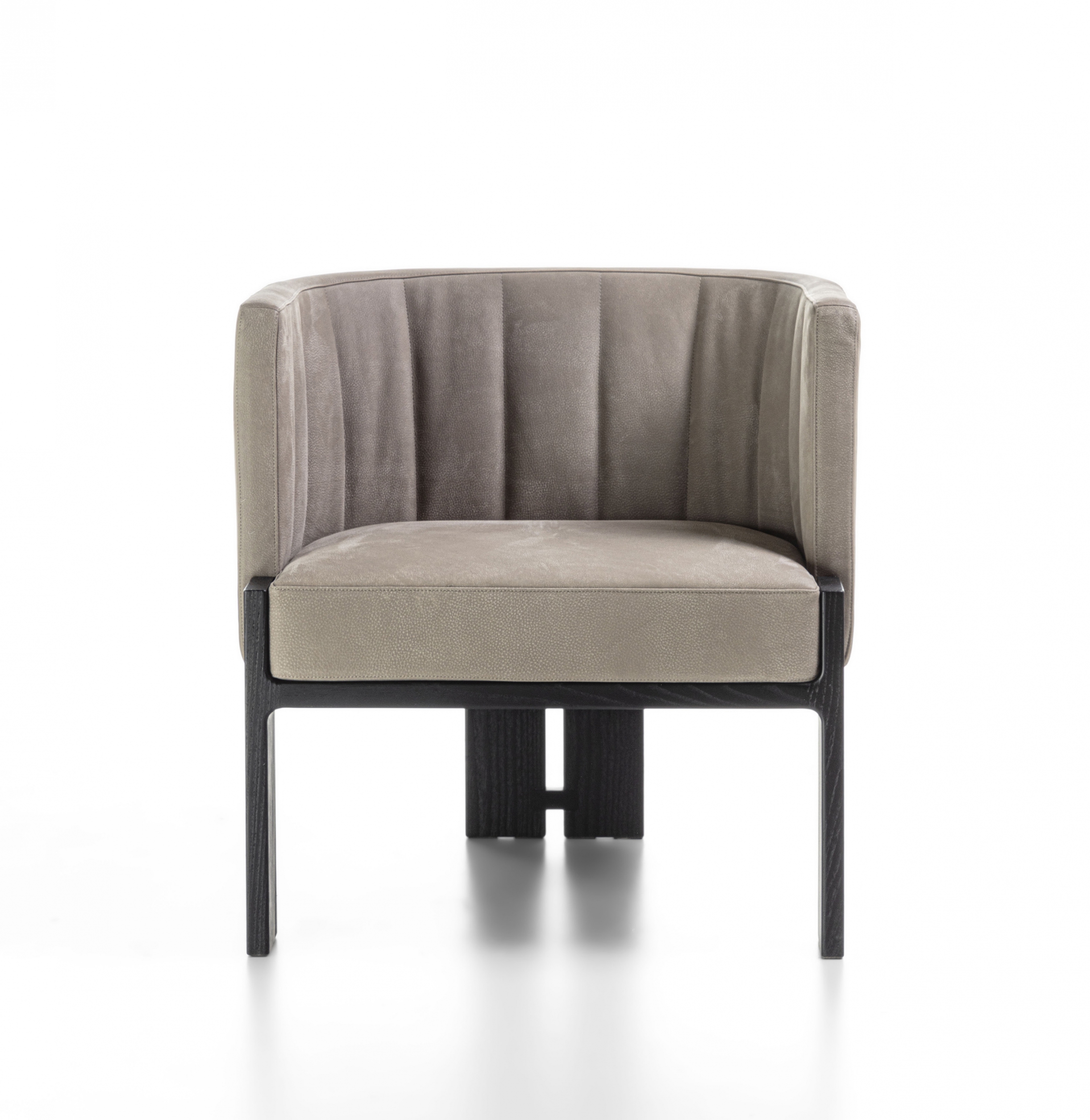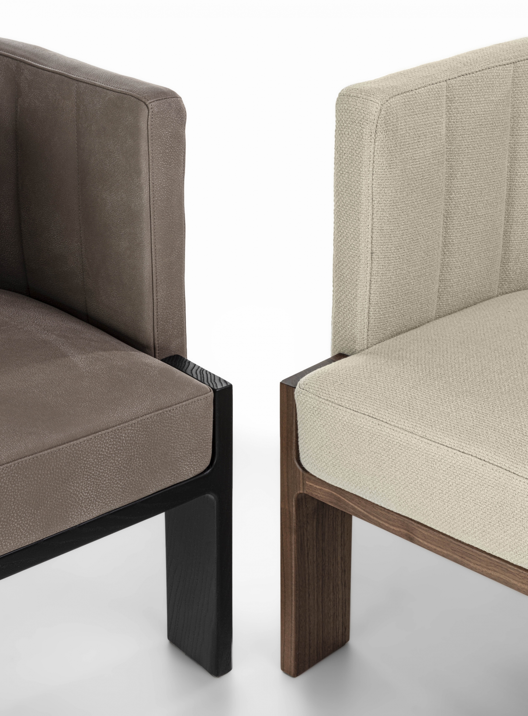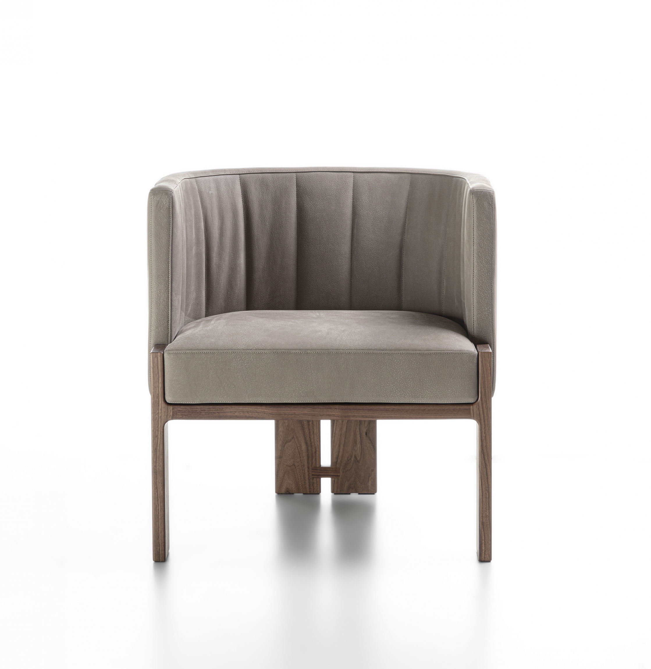Armchair with solid wood frame and leather or fabric upholstery.