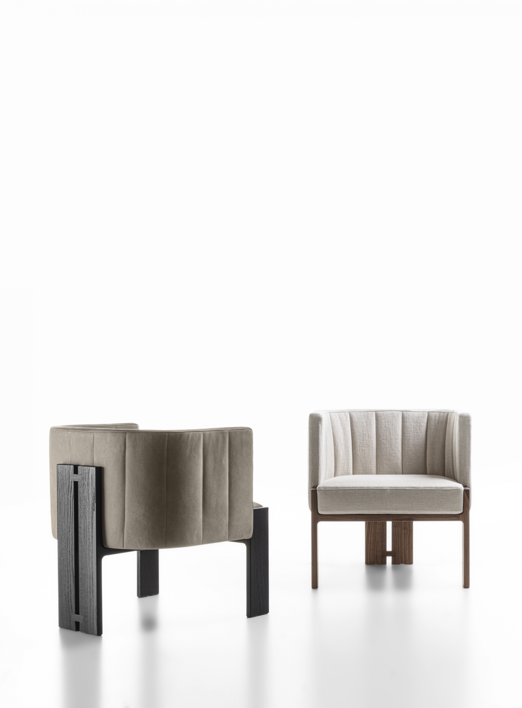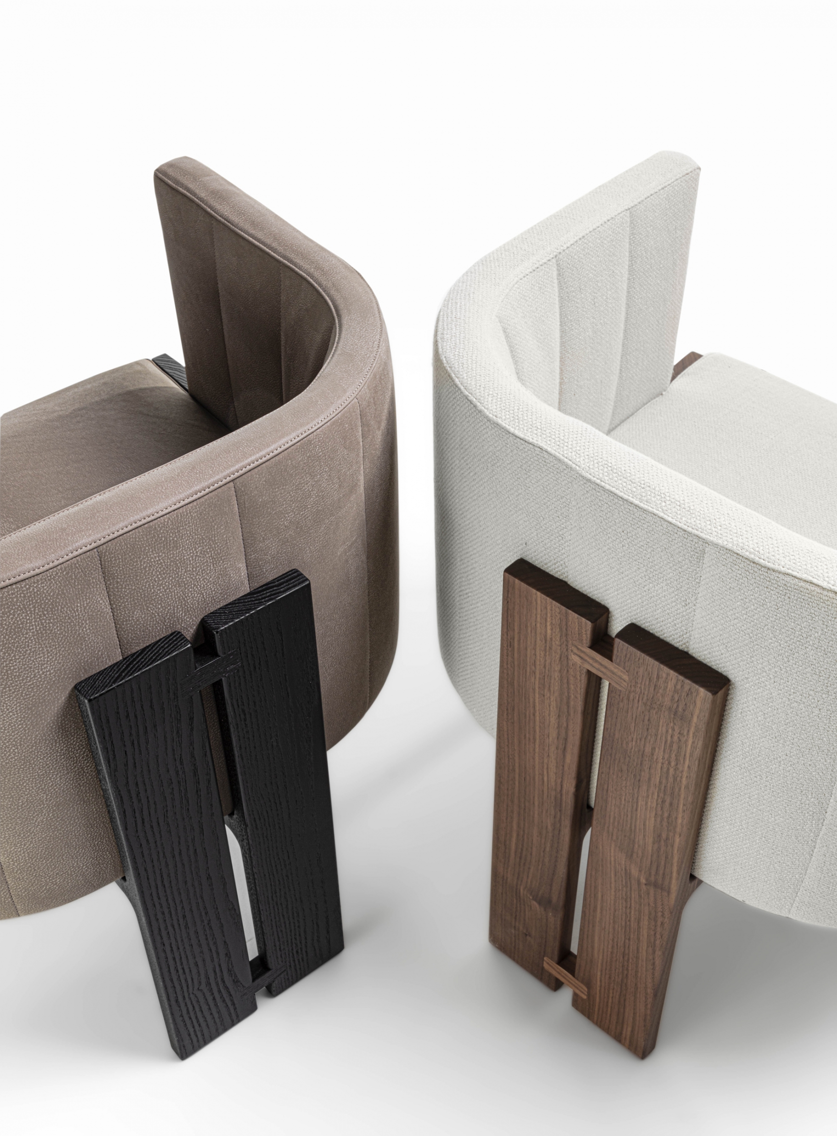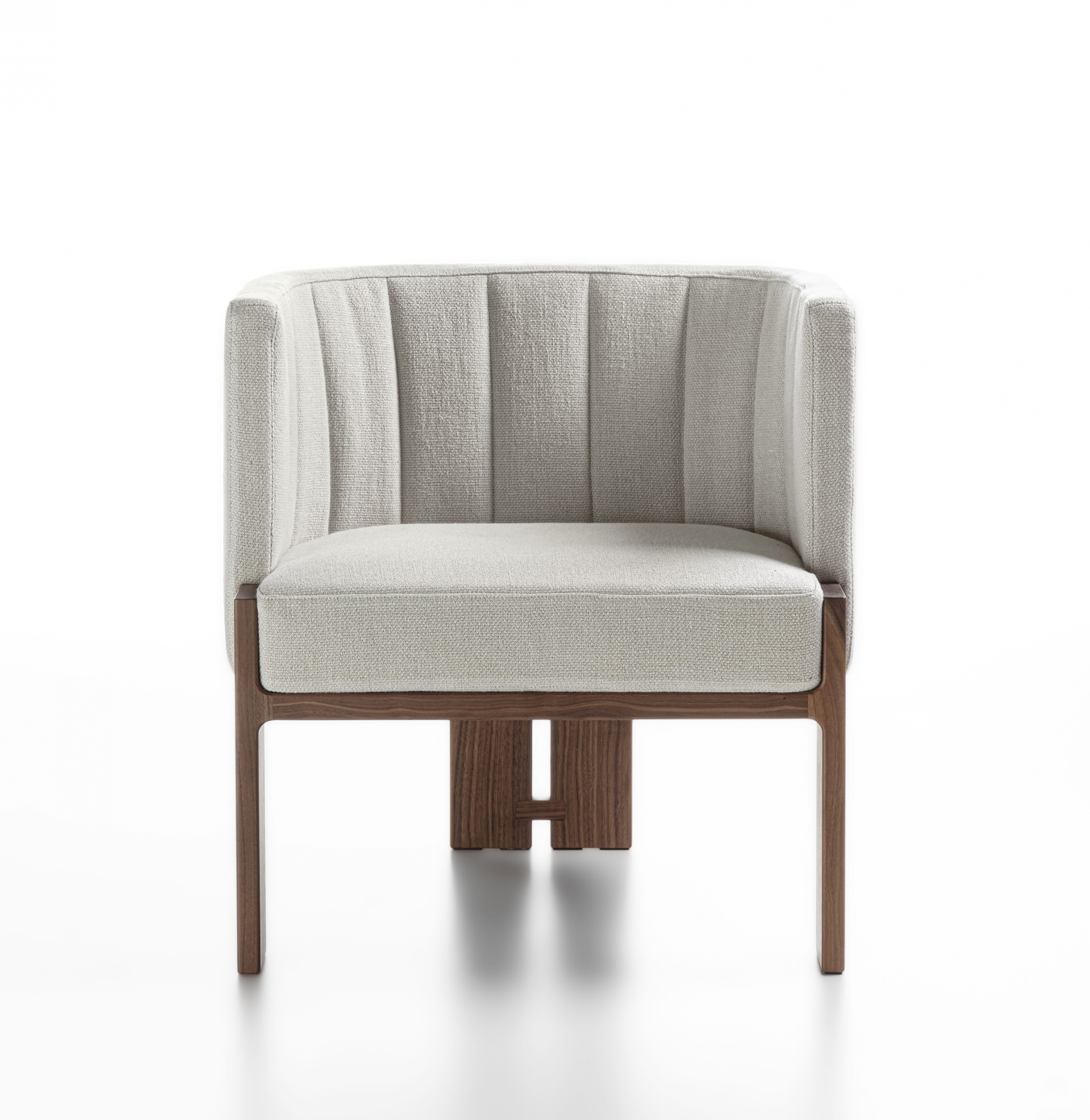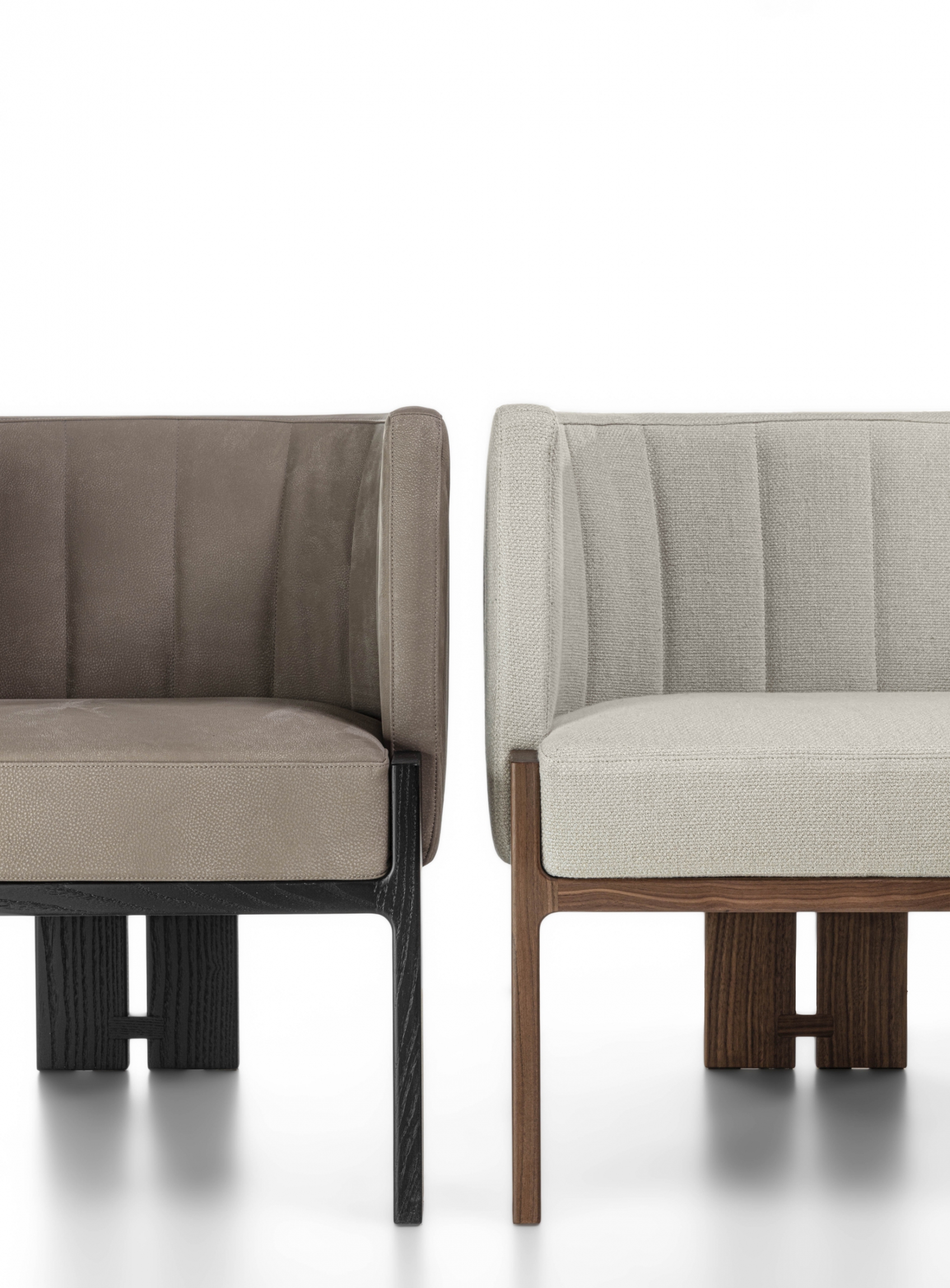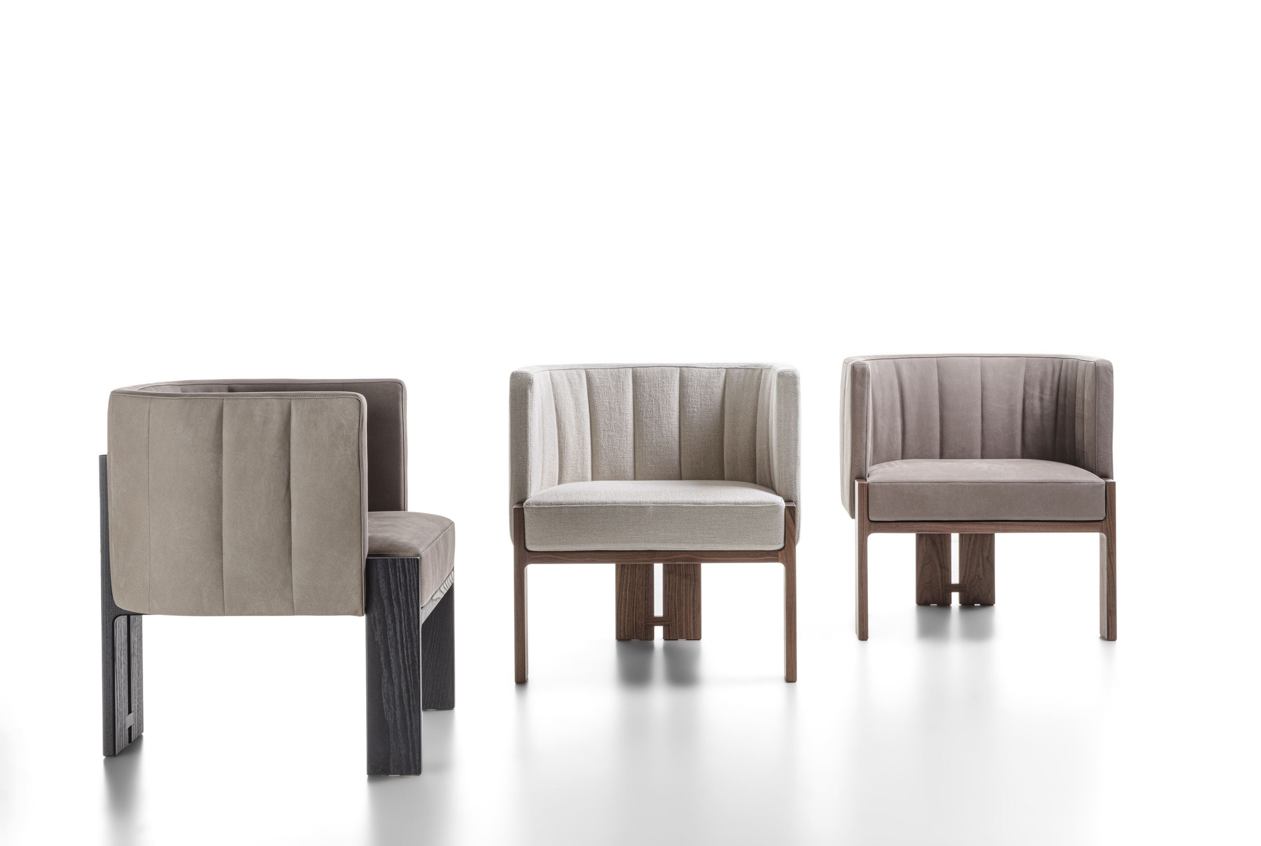 Armchair with solid wood frame and leather or fabric upholstery.