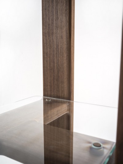 A very important section characterized by joints executed according to a tradition cabinetmaker, returns a poetic materiality and plasticity to a material as warm and noble as wood. Interspersed with horizontal glass planes, which create an apparent formal simplicity, the whole collection expresses a strong character and refined elegance that allows it to find an easy placement in domestic spaces as well as in important collective spaces.