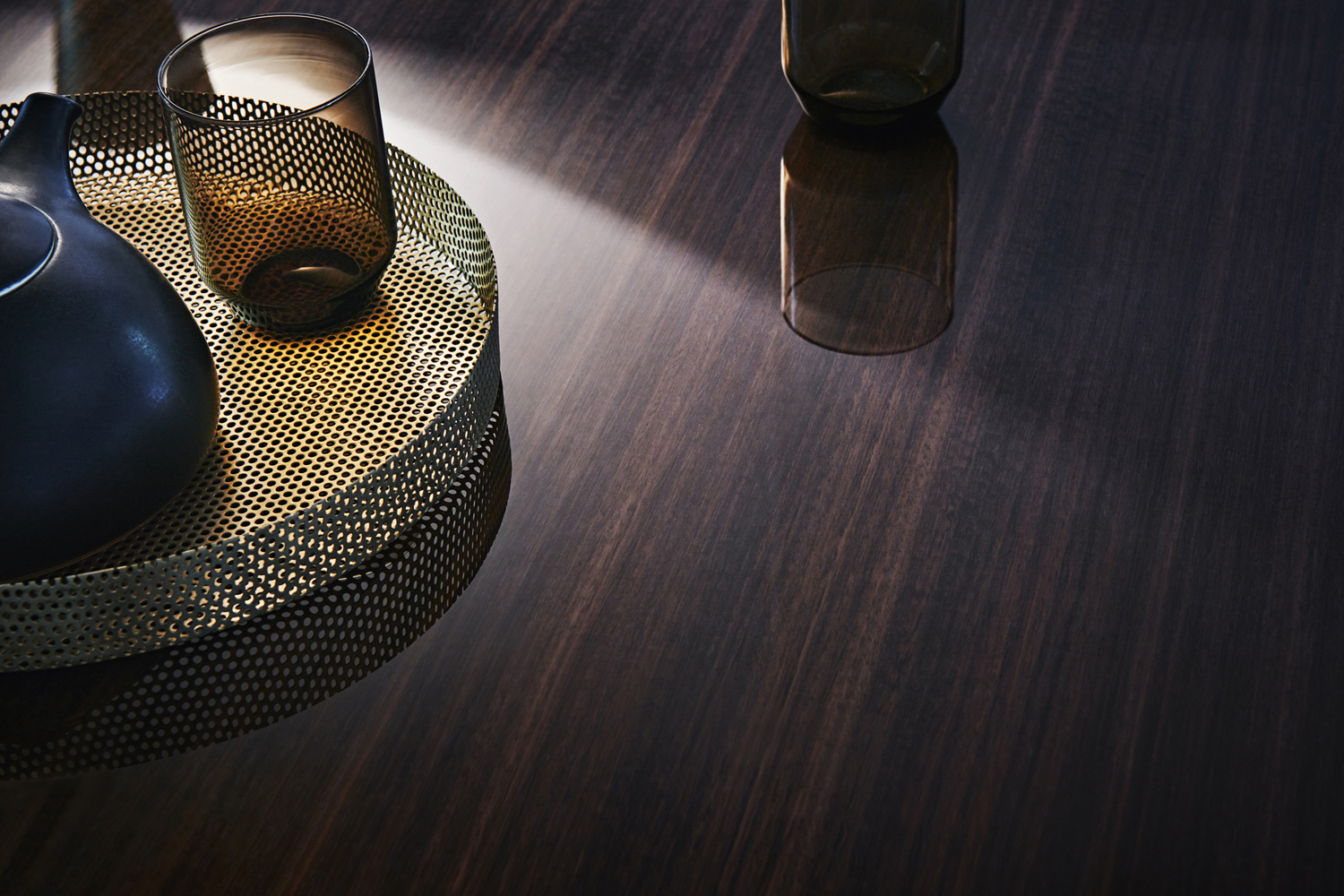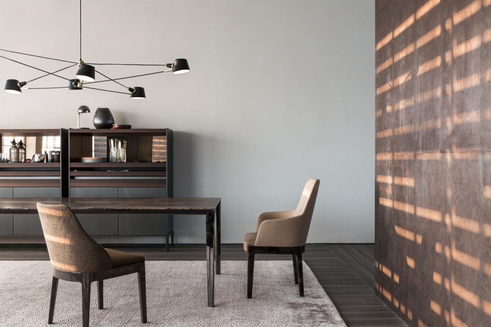 Filigree餐桌可以選用一系列不同尺寸或者可伸縮款式。高光和亞光壓鑄鋁制框架支撐著臺面,豐富的材質選擇提升了價值感。通過隱藏的可橫向折疊五金系統實現可伸縮餐桌功能。整張桌面為一個整體,并可以通過延伸的桌面擴大尺寸。桌腿盡量外置以最大限度地利用空間,桌面極其纖薄,值得一提的是用于容納伸縮桌面功能件的空腔結構內部只有38mm凈高。餐桌可選用不同的材料和飾面以滿足所有需要。