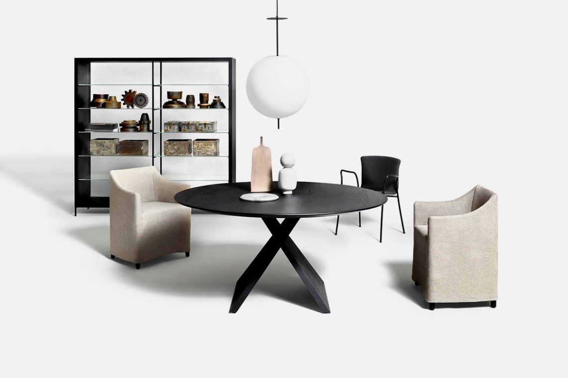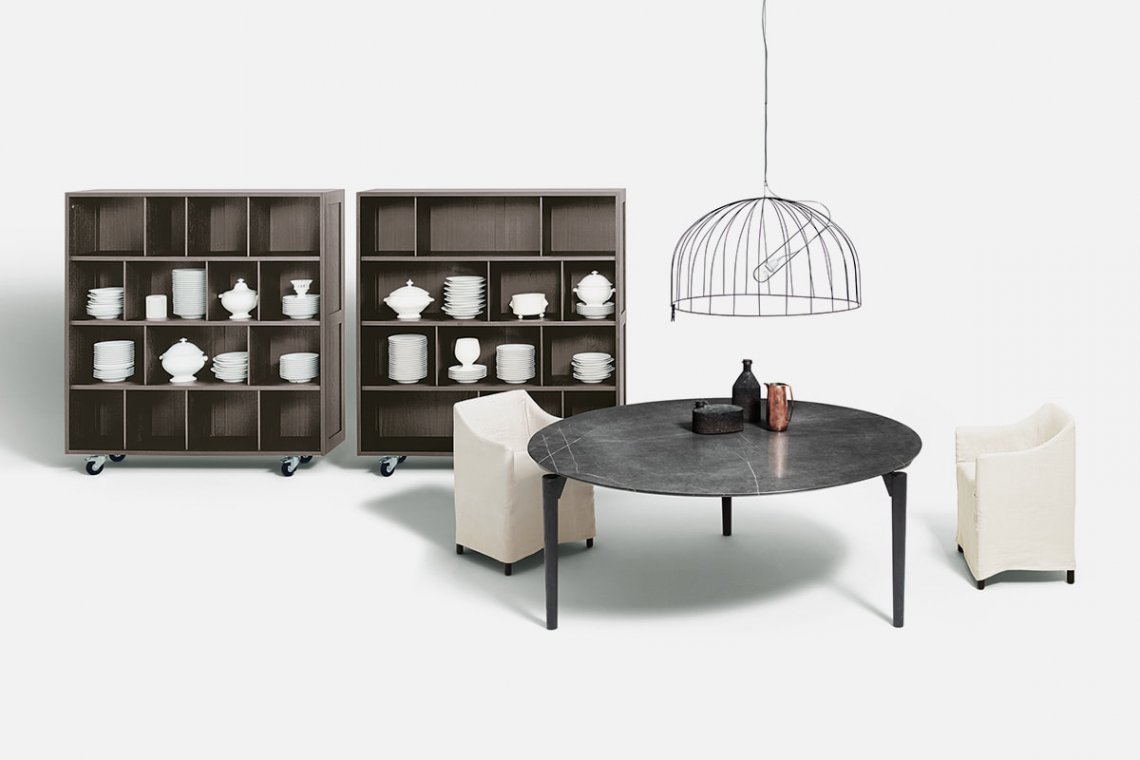 The elegant and rational Lady Pollack chair is a project designed by Vico Magistretti in 1998 that was presented again in 2016. The seat resting on the charcoal-colored ash wood legs has a linear, classic and almost geometric structure. With a completely removable fabric cover, it is perfect for the dining area, but it can also be used wherever a graceful yet perfectly functional element is needed