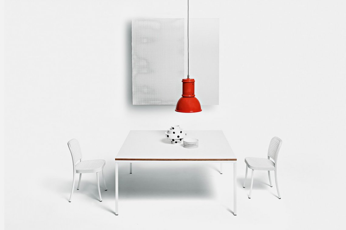 Inspired by the proportions of the classic Thonet chair, Vico Magistretti designed a polypropylene and aluminum chair that’s comfortable, light, and sturdy. Suitable for around the dining table or in the study, it is so versatile and adaptable that it can be used in a variety of settings. More than a chair, it is actually a seating system composed of chairs with or without armrests, stackable seating (up to six chairs), chairs with swiveling castors, stools, multiple beam-mounted chairs and accessories.