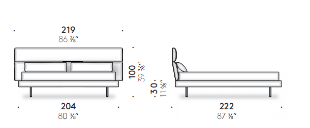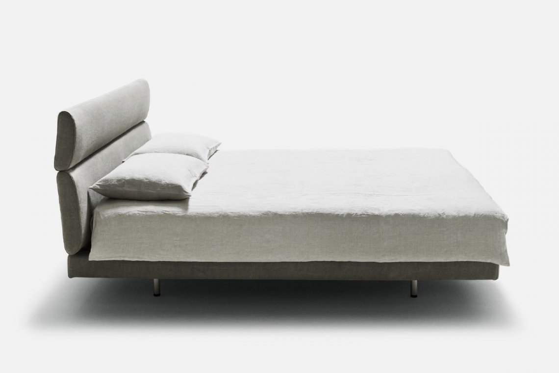 An invitation for rest: the classic design by Vico Magistretti has a distinctive yet well-balanced silhouette created by the padded double bar headboard and the large, comfortable bed base with beech wood slats, both with easily removable covers. Particularly comfortable, it is perfect for reading, relaxing and, of course, sleeping.