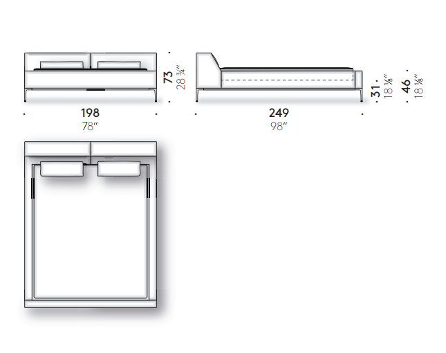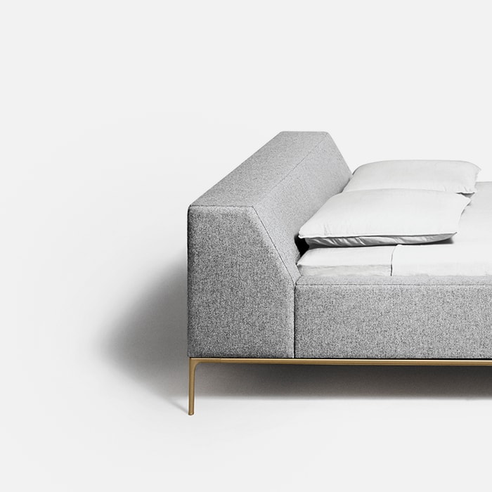 The elegance of the lines is minimalist, and the sleek design by the Japanese Time & Style has a no-frills look. The Time for Trip Memories upholstered bed is cozy and ergonomic, so you can comfortably lean against the angled headboard while reading a book. It is completed by a bedside table that shares the same brushed metal frame and has the same geometric lines.