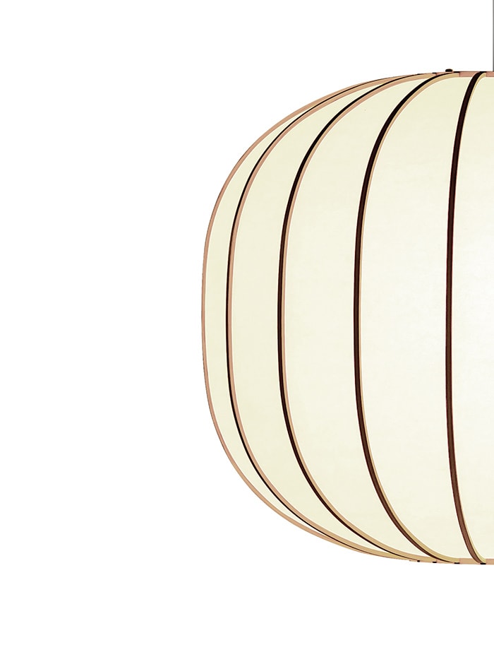 Available in a hanging or floor lamp version, it transforms light into poetry that merges strength, stability and grace, recurring elements of Japanese tales.