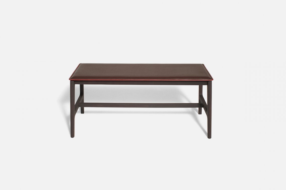 The same seams are found in the furnishing accessories such as the leather benches and trays.