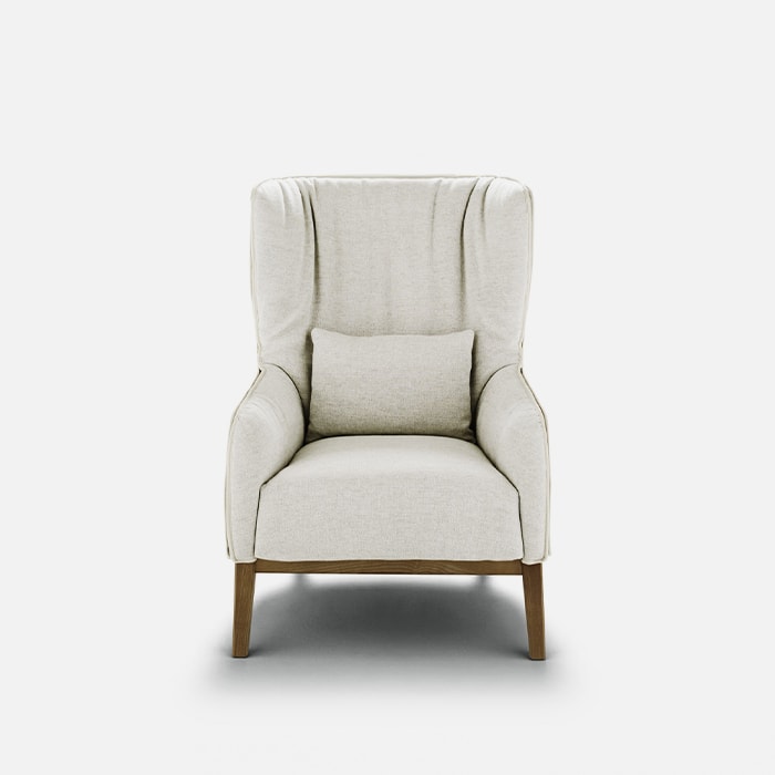 This reading armchair is a great classic given a contemporary update by talented designer Patricia Urquiola. The solid ash frame covered in fabric or leather is decorated with tonal or contrasting piping on the edges. The removable cover has a practical zipper that traces the lines of the back and armrests.