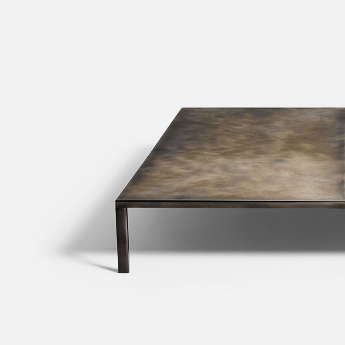 Slim yet strong lines are splendidly interpreted by the finishes of De Castelli that combine experimental design and industrial production techniques. Each Metallaro side table — a stainless steel sheet powder-coated with a semi-matte white, matte black and DeLabré distressed finish — is a one-of-a-kind piece: the surface changes over time, adding beautiful accents with each passing day