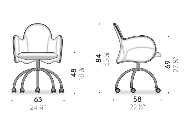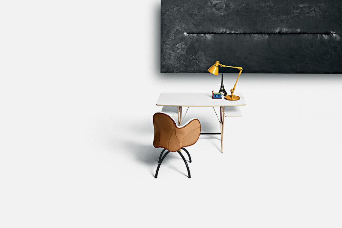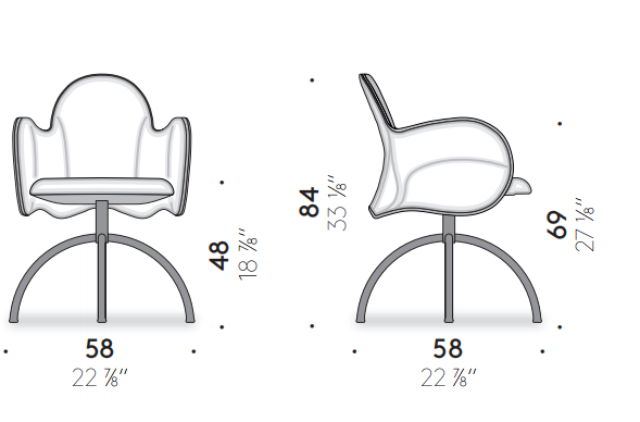 The leather upholstery is reminiscent of a horse saddle, while the hand-stitched seams represent the finest traditional Italian craftsmanship, tracing the back and sides with soft, enveloping, comfortable curves. A design classic for the home or office desk, Incisa is the swivel chair designed in 1992 by Vico Magistretti. Just as beautiful from behind, it comes in two versions: with a static four-spoke base and a revolving five-spoke base with swiveling castors.