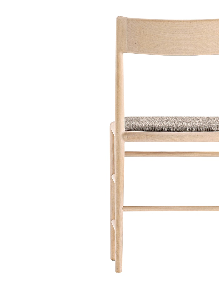 Developed from The Sensitive Light Chair as a new model, The Sensitive Back Chair was designed with a more comfortable back seat while maintaining the exquisiteness and simplicity of its predecessor. The wooden parts are carved to extreme thinness and delicacy, the backrest was made as thin as possible while ensuring sturdiness, and the surface that touches the back was trimmed to highlight the pillars which originate from the rear legs. The backside of the backrest has a smooth finish, with the style and the board seamlessly connected for an elegant look.