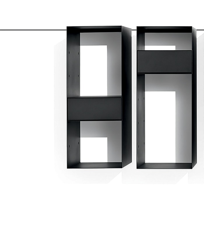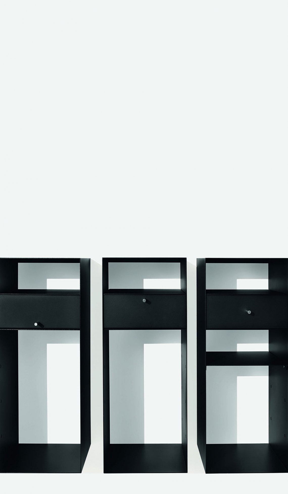 With its concealed rail mounting system, C.?O.?P.? Storage System offers a simple flexible storage solution.? The railing system provides a simple ‘plug & play’ solution.? Created of only 3 basic units, a shelf insert and a drawer, the C.?O.?P.? system offers a minimalistic storage solution for office and residential use.?