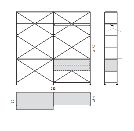 Only a handful of components, that connects in numerous ways, all attached by using the universal screw; “R.?I.?G.? joint”, creates this diverse shelving system.? An uncompromised choice of materials and the graphic stabilizing system ensures a stunning stability.?
