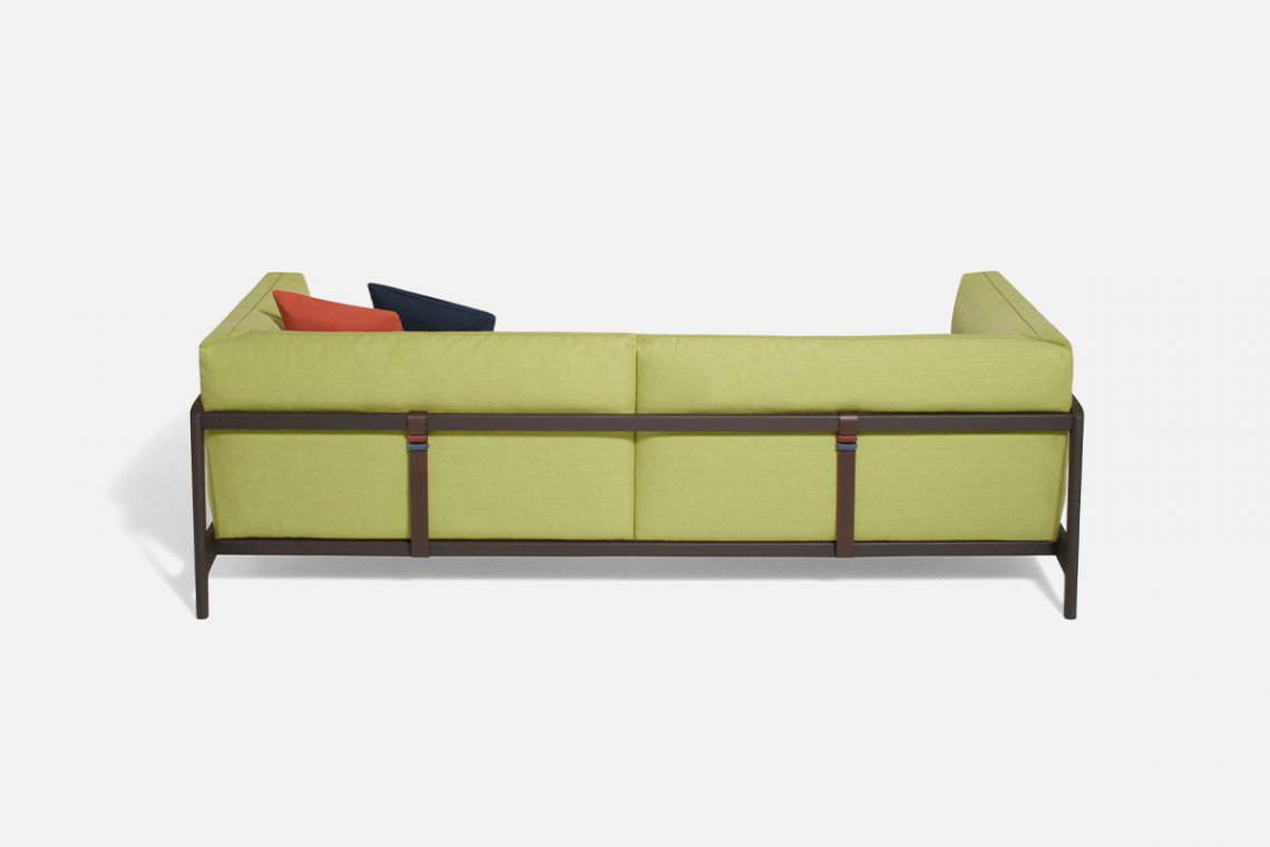 Leather straps, which bind to the structure to become an integral part of the design, are another key element, with minutely coloured details. Functional leather pockets are also hooked onto the finely rounded armrest with its pleasurable ergonomics and tactility.