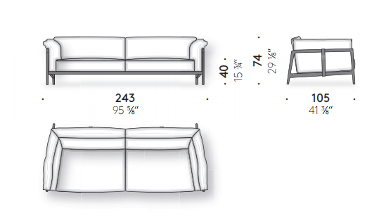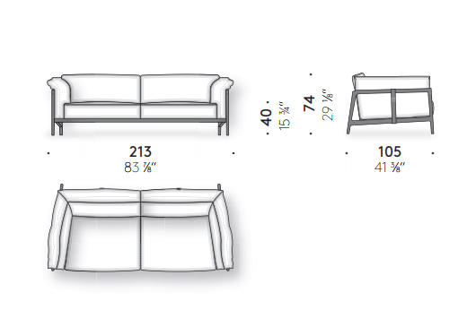 Sofas, armchairs and pouf are marked by contrasting stitching that evoke sartorial know-how.