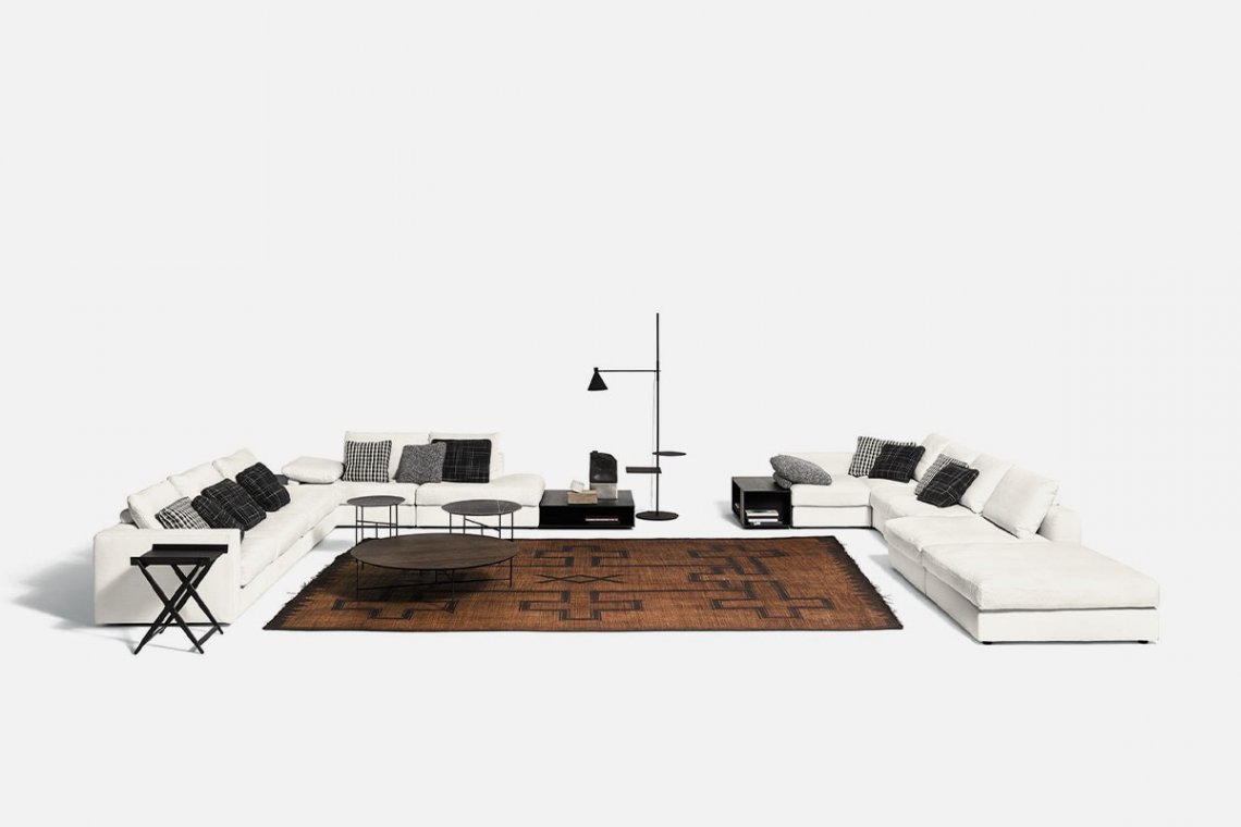 It fits perfectly into any setting because it is designed to form new shapes to suit different needs of space, habits and hospitality. Mosa?que, designed by Piero Lissoni, is the most flexible modular system around: it has modules in different sizes, depths and lengths. It can be placed against the wall or stand at the center of a room, like an island or platform. The system can count on wood console cabinets used as armrests, marble or metal tables, corner sections, chaise, daybed, a large pouf and lots of pillows with different padding.