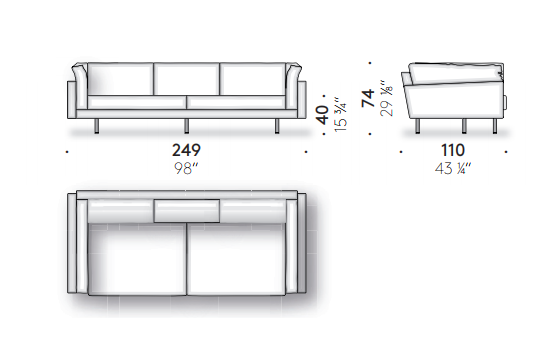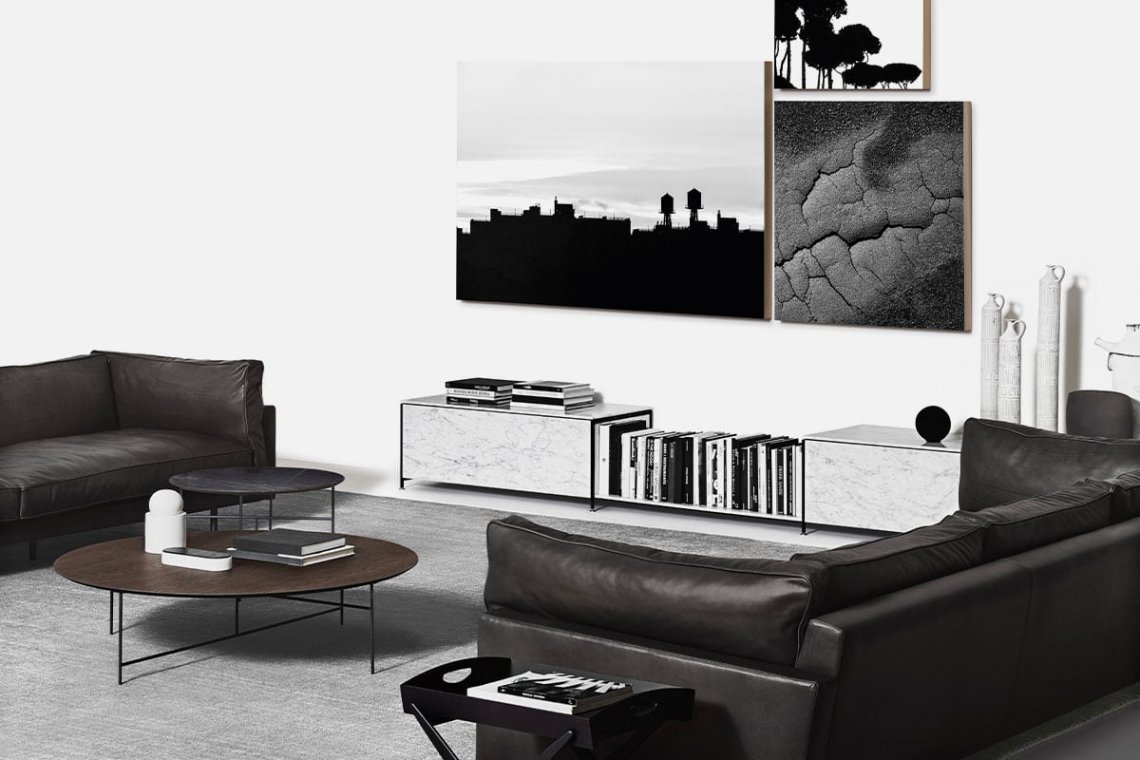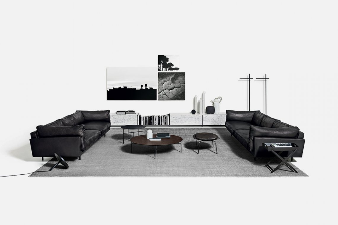 Geometric elements, squared lines, it has a particularly comfortable, soft, regular seat and edges defined by distinctive seams. Both the fabric and leather versions are the perfect solution for various living room layouts.